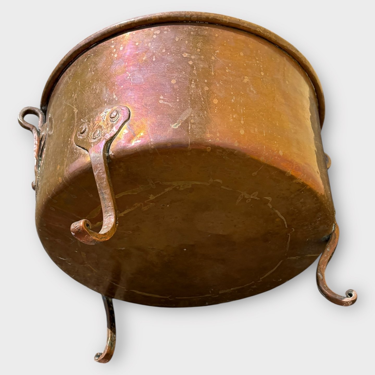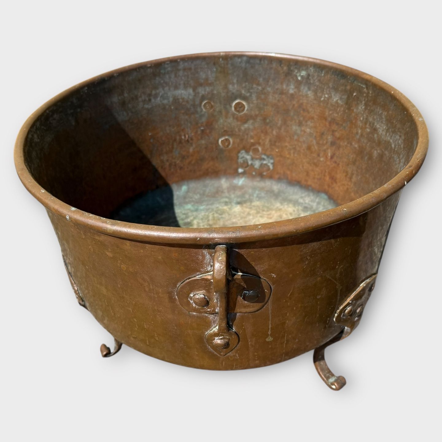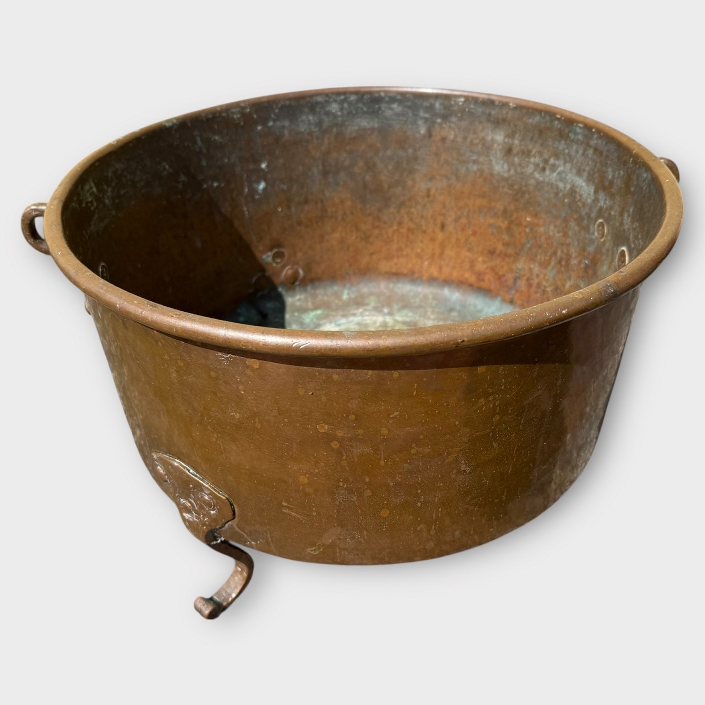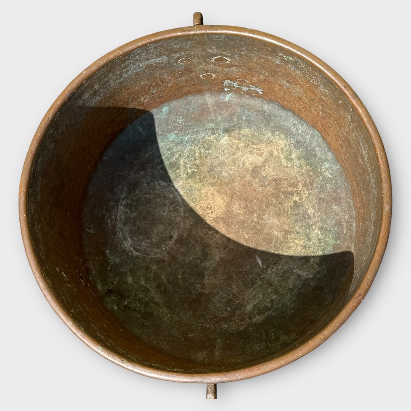 Kobbergryde på 3 ben, diameter 39cm, højde 28,5cm, pæn stand
