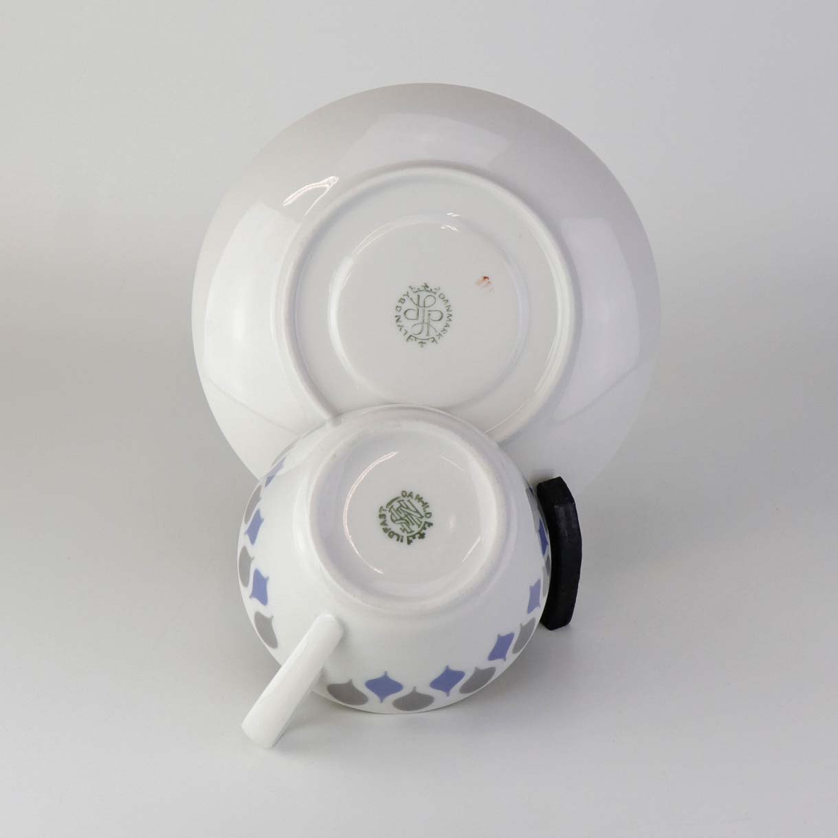 Tekop med underkop i porcelæn fra stellet Dråbe - også kendt som Danild 66