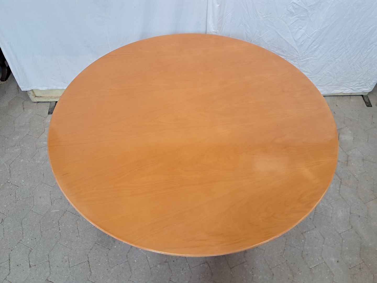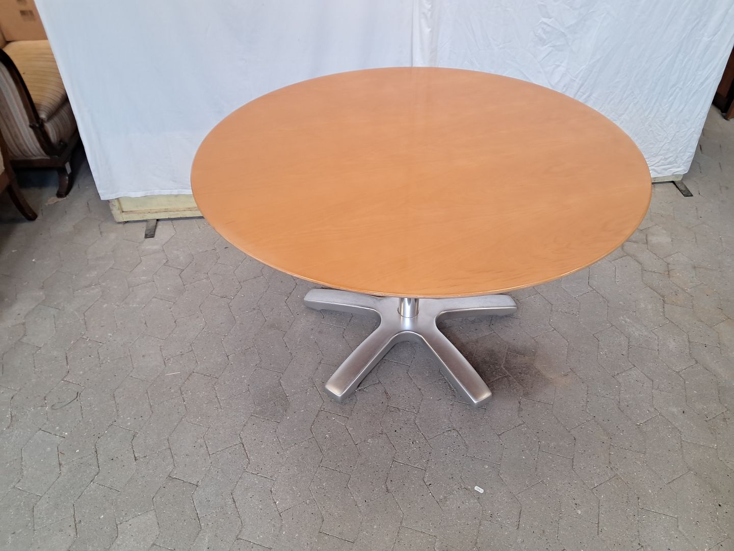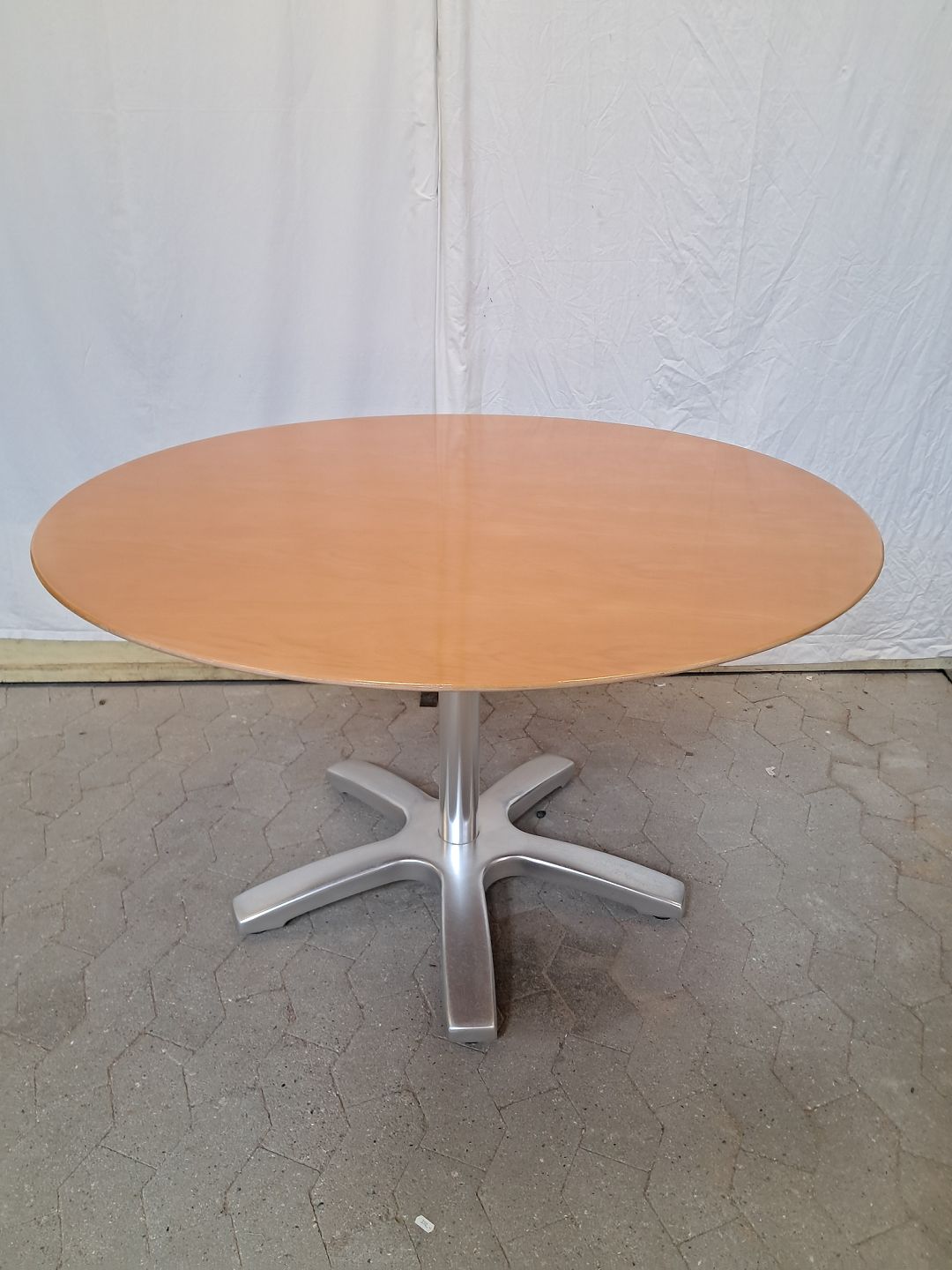 Rundt spisebord i fineret bøgetræ med metal understel, fra 2000erne.