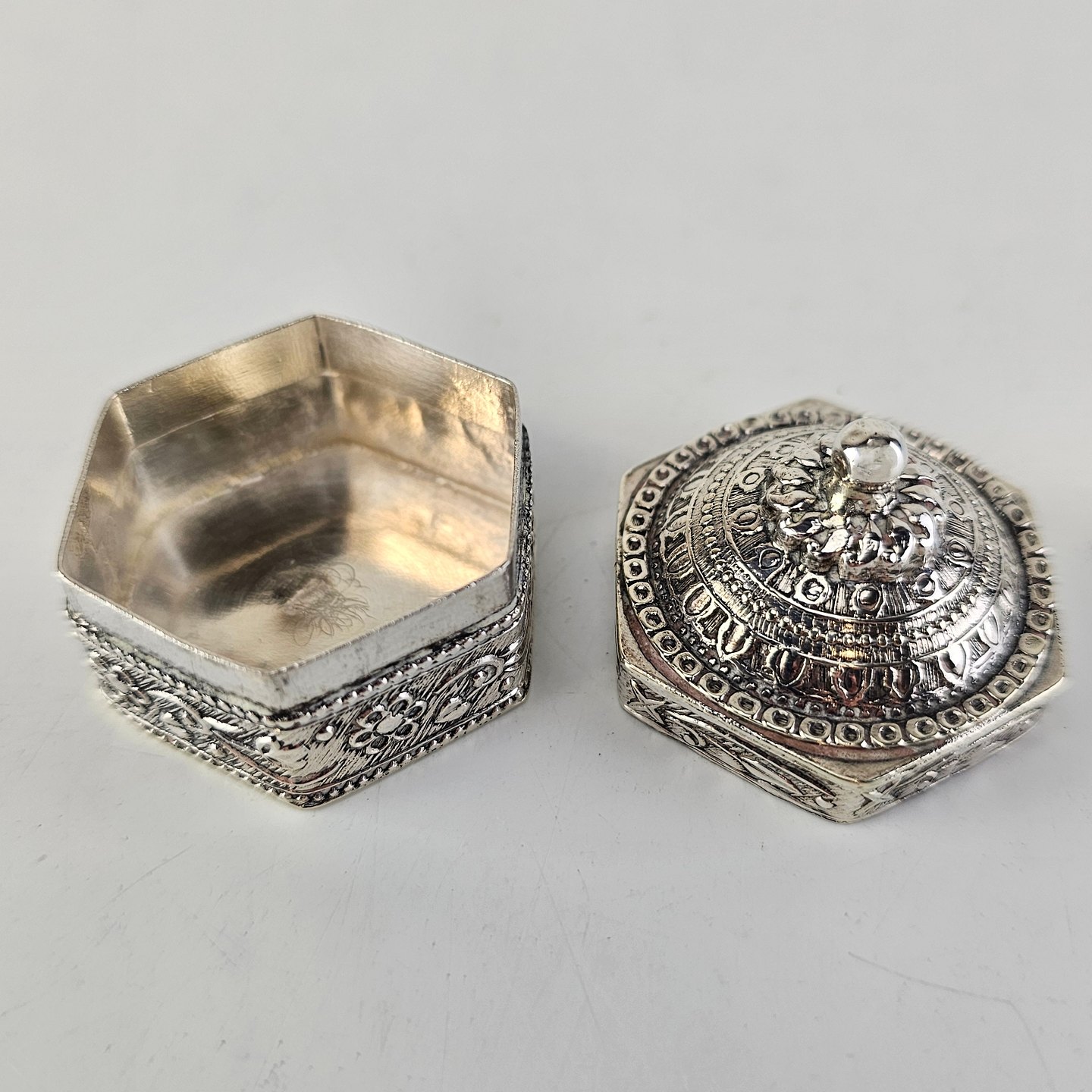 Sølv dåse med koppellåg
