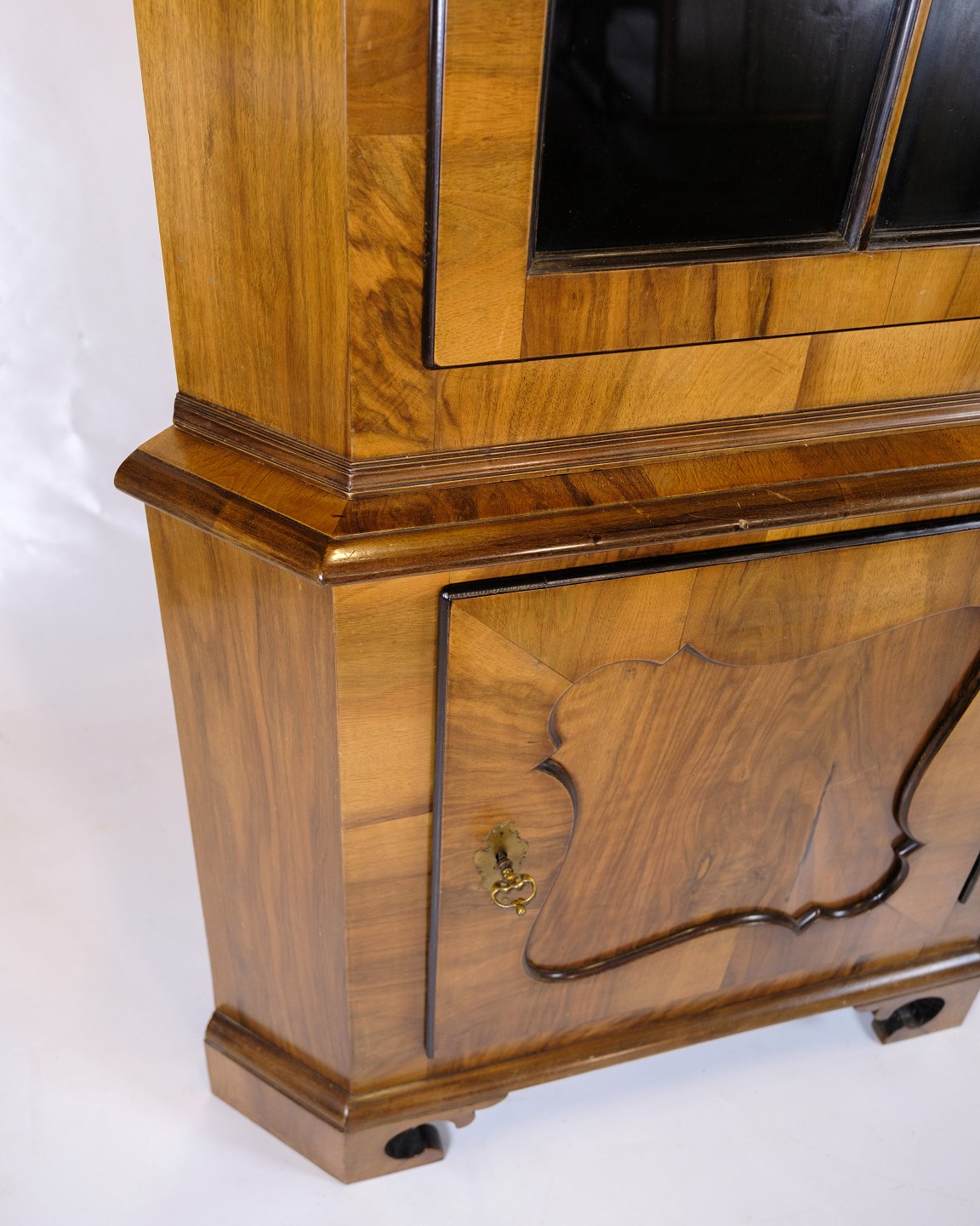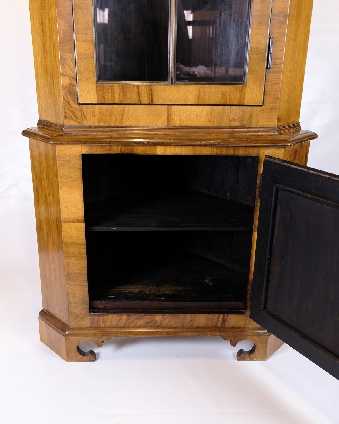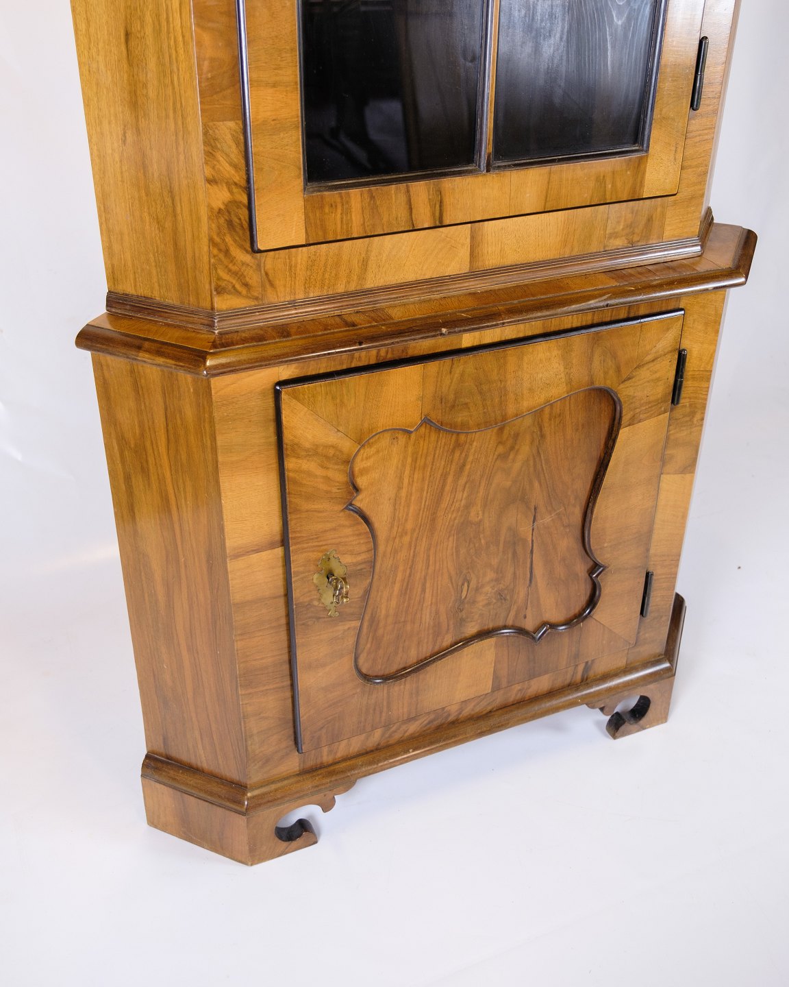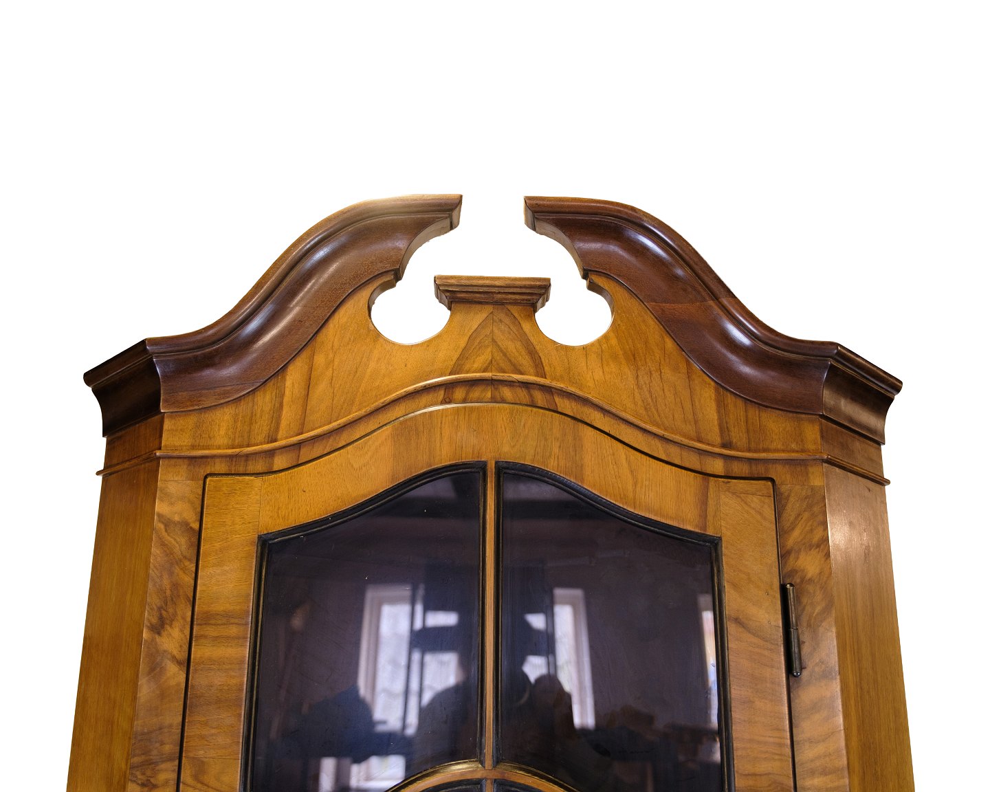 Antikt Vitrine/Hjørneskab - I Barokstil - Nøddetræ - Glaslåge Med Sprosser - Ca. År 1900
