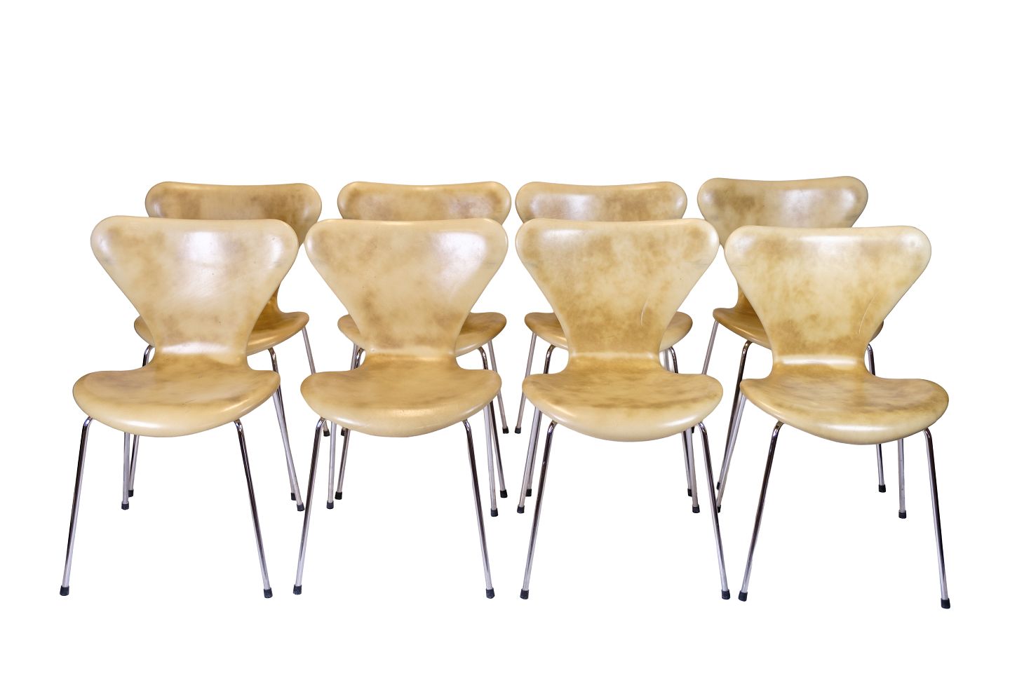 Sæt Af Otte Syver Stole - Model 3107 - Syver Stol - Natur Læder - Arne Jacobsen - Fritz Hansen