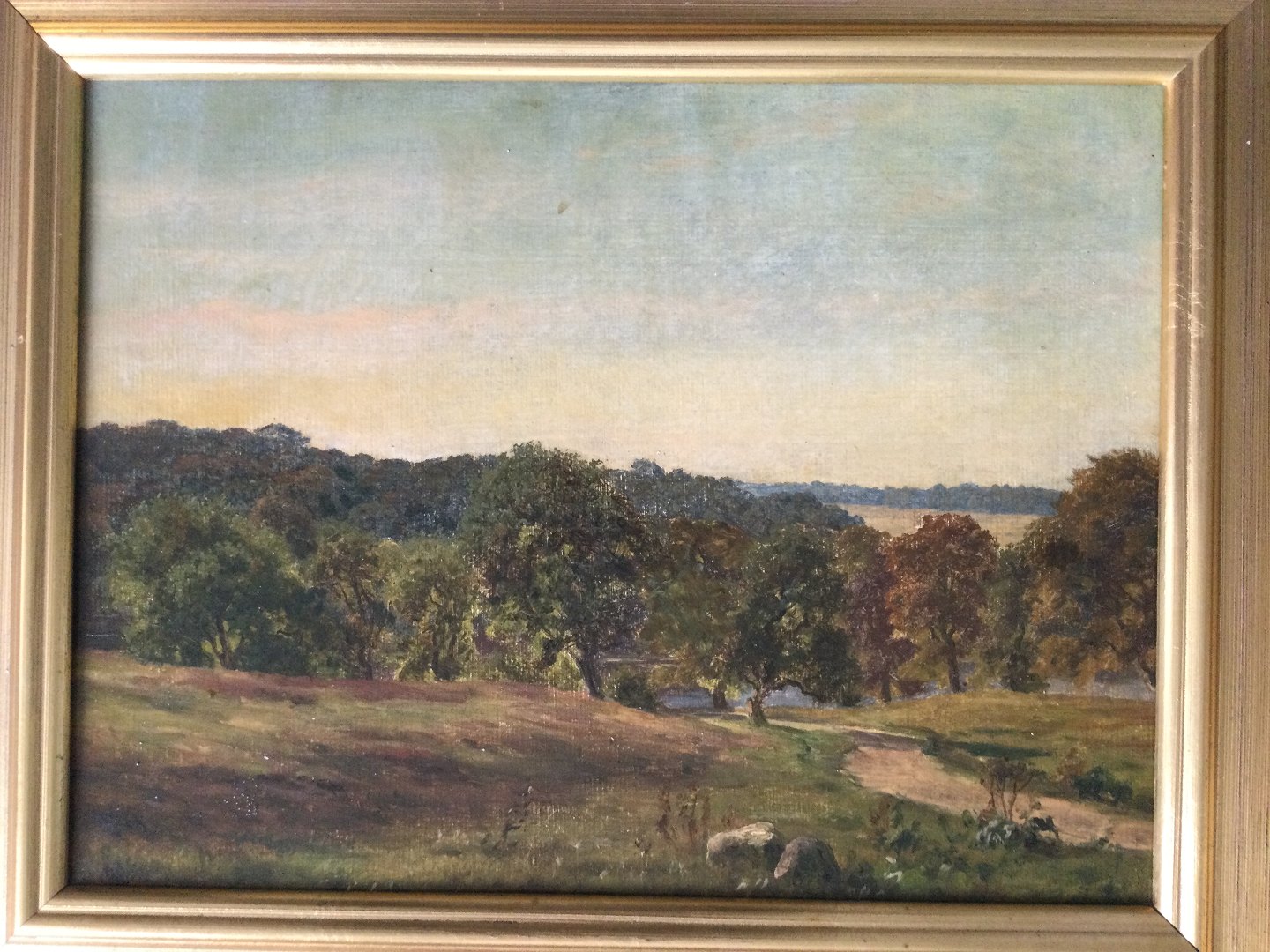 Maleri af Carsten Henrichsen 1865 - Landskab med sø.