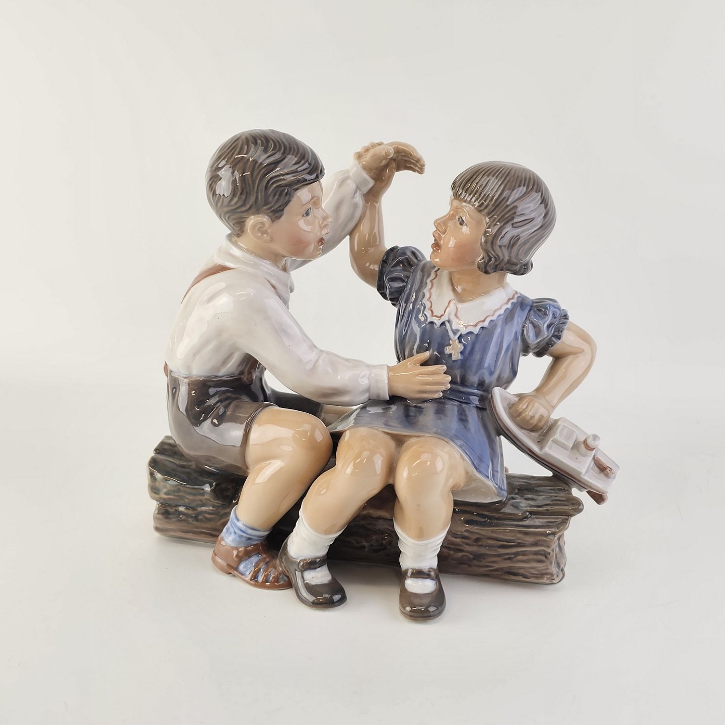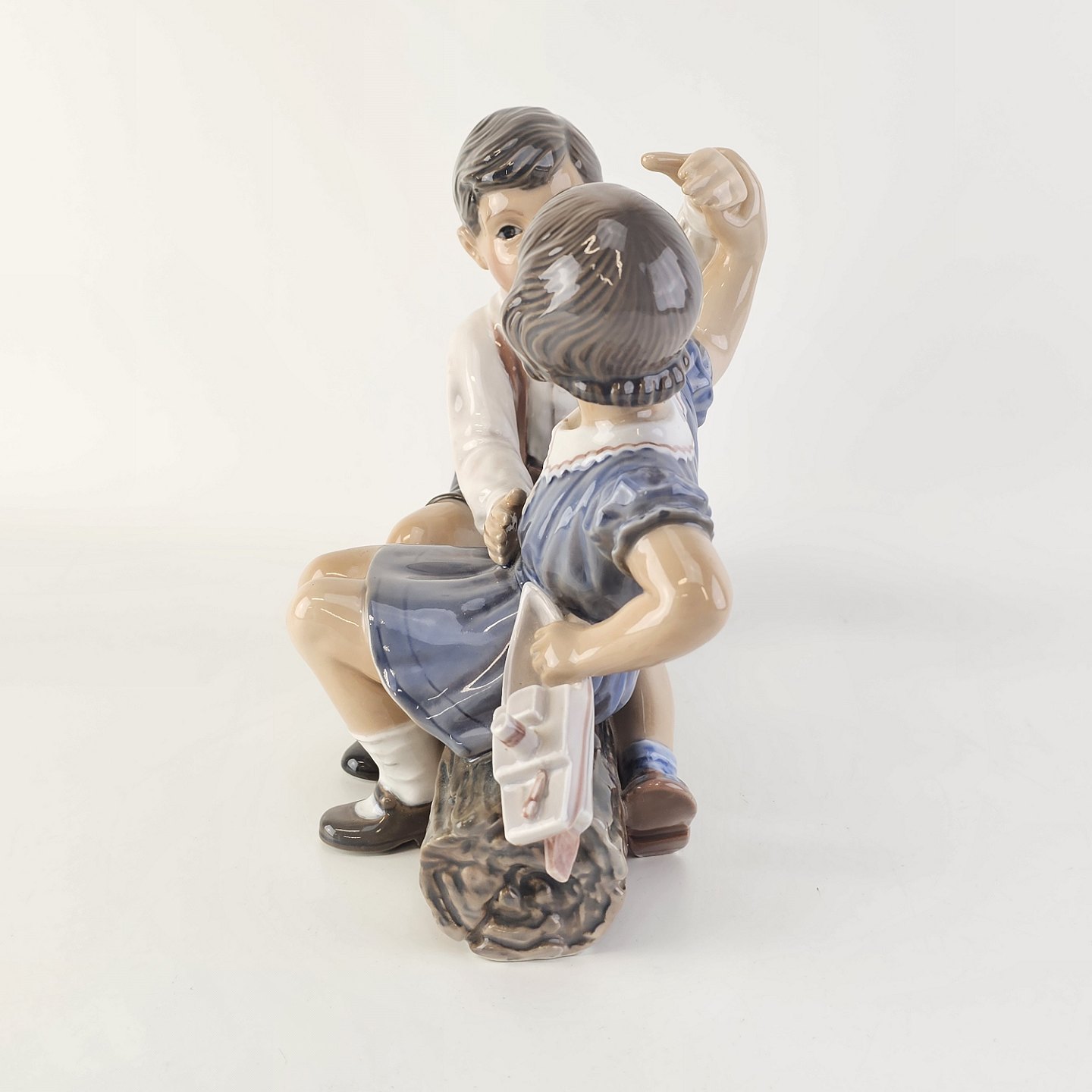 Figur af Pige og dreng med skib