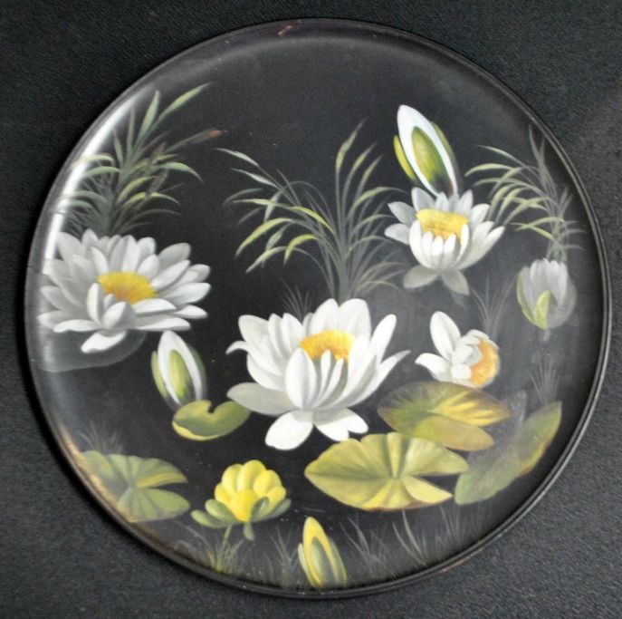 P. Ipsen, håndbemalet plaquette, 19. årh. no. 104, 19. årh. København, Danmark. Keramik. Håndmalet med åkander. Stemplet. Dia.: 29 cm,