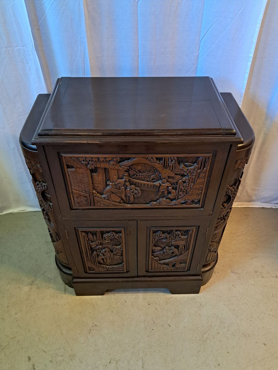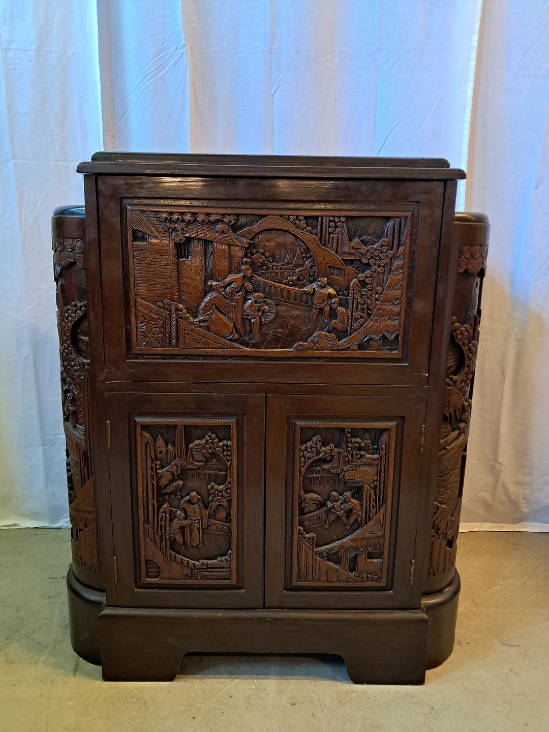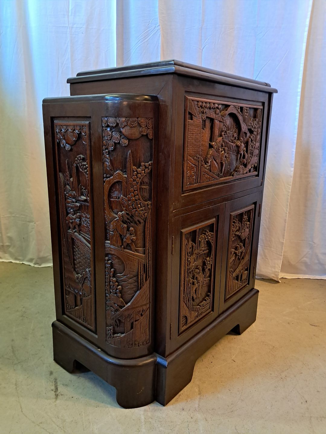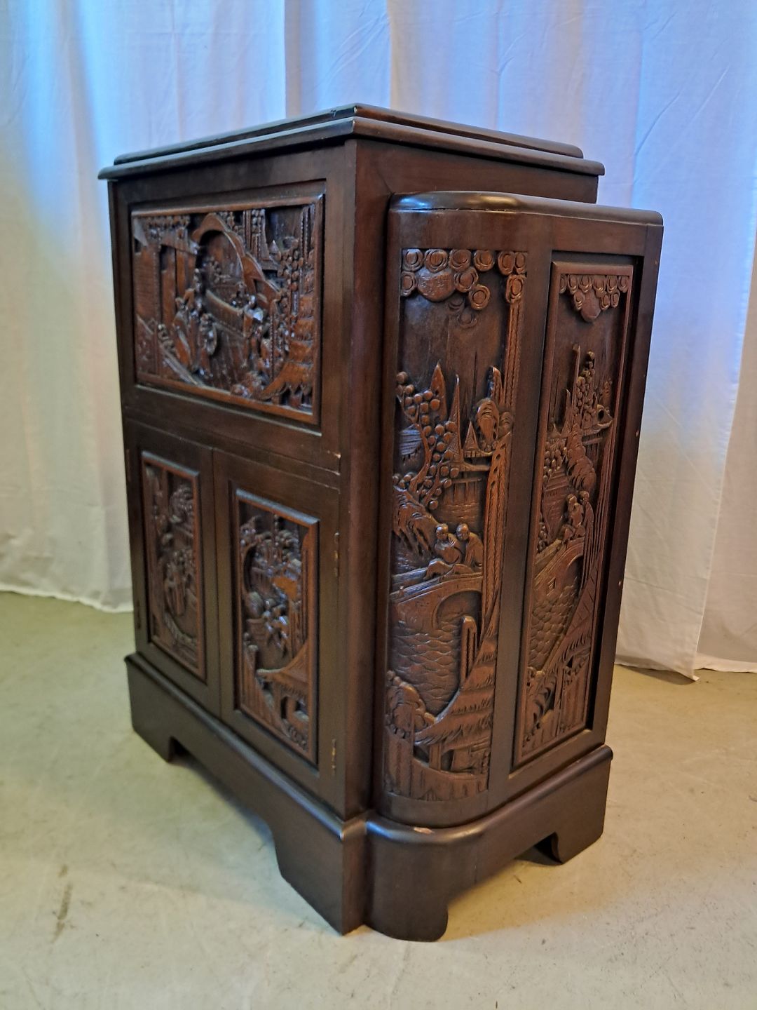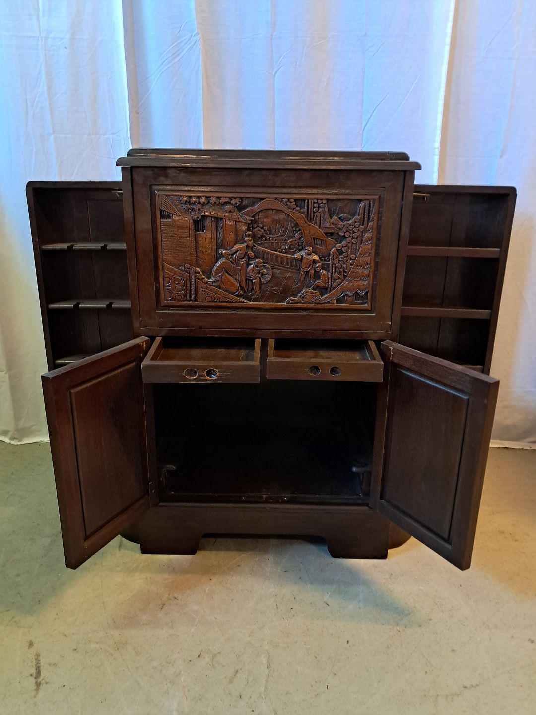 Asiatisk barskab i massivt træ, fra 1980erne.
