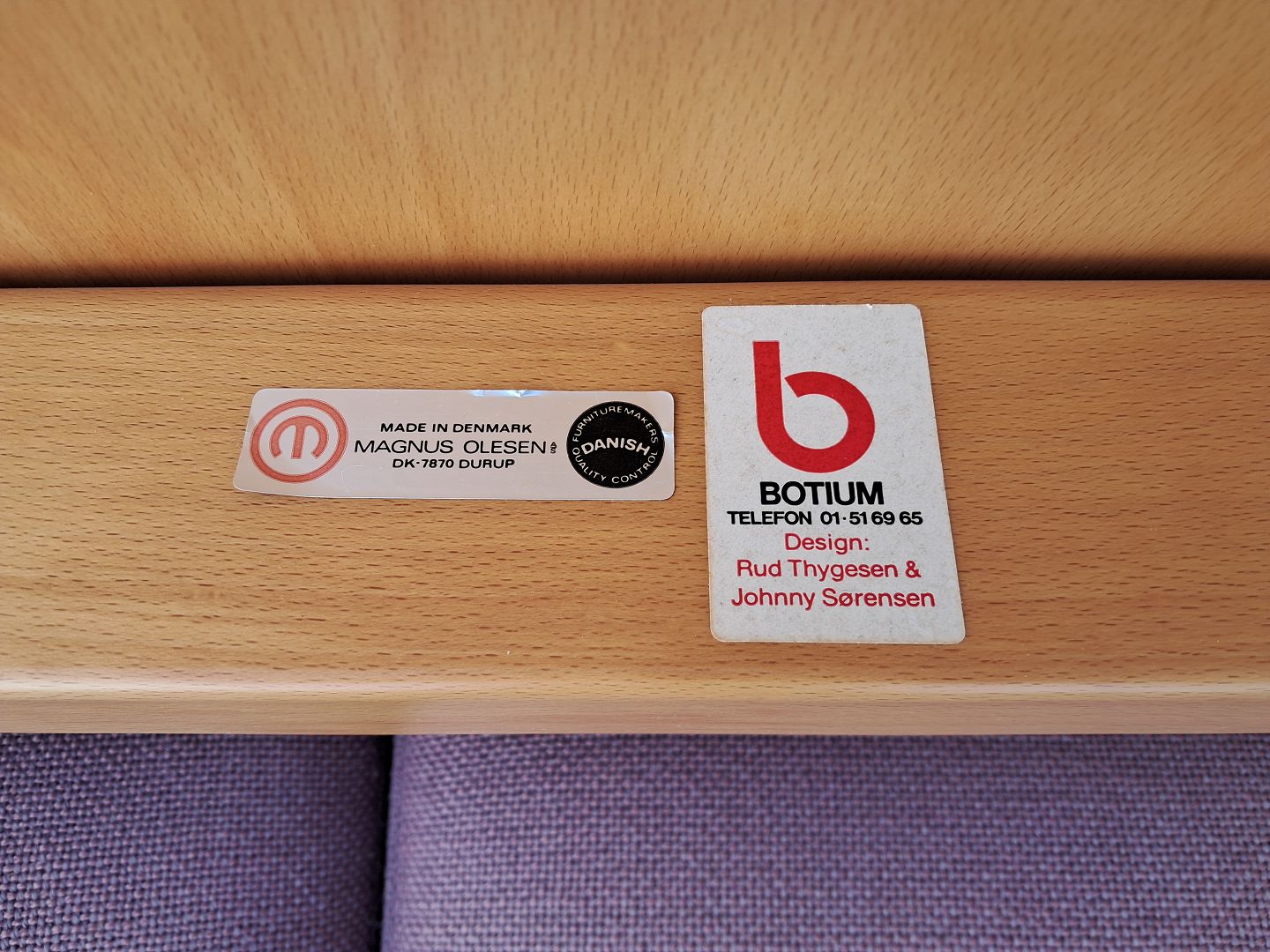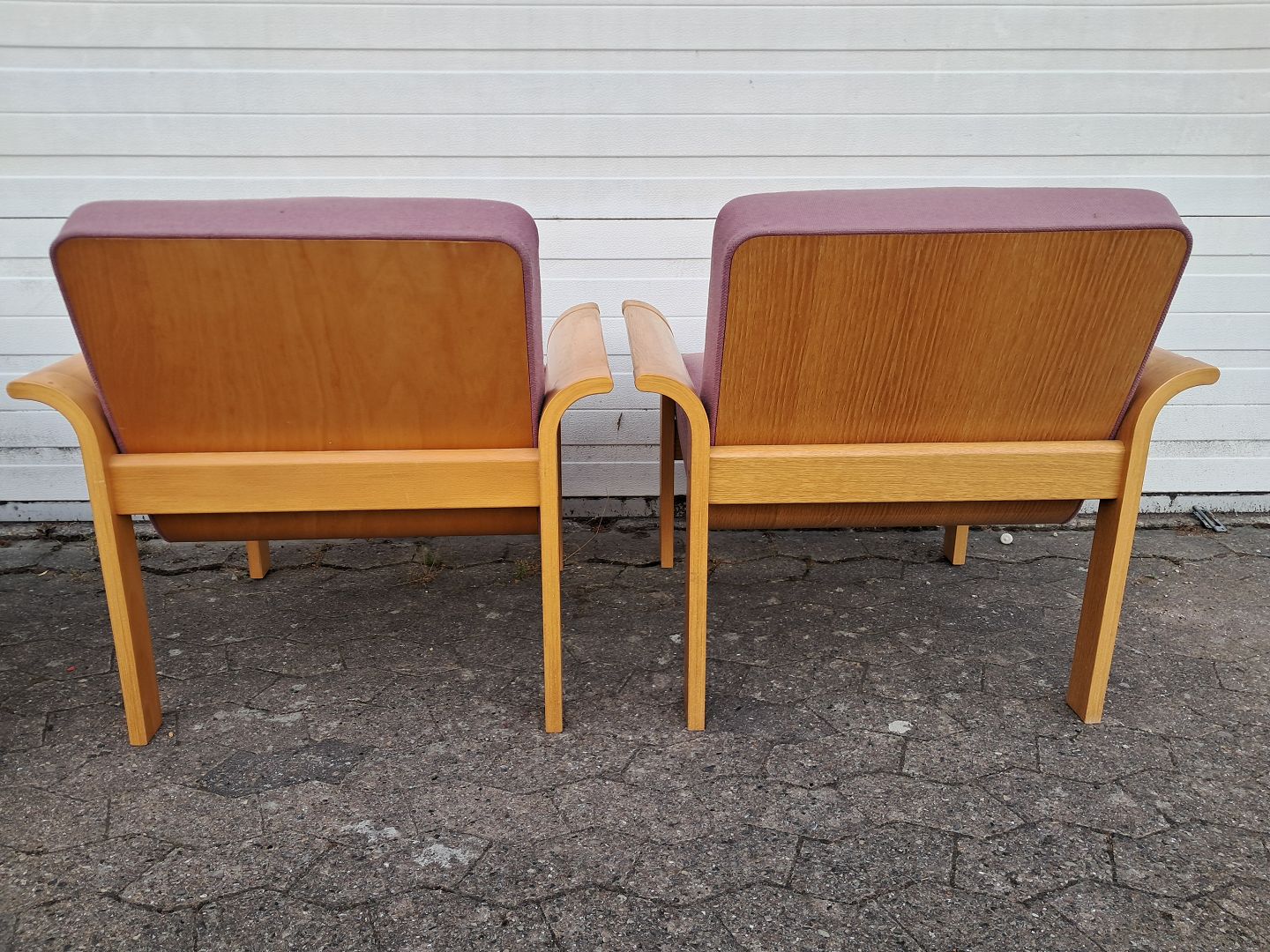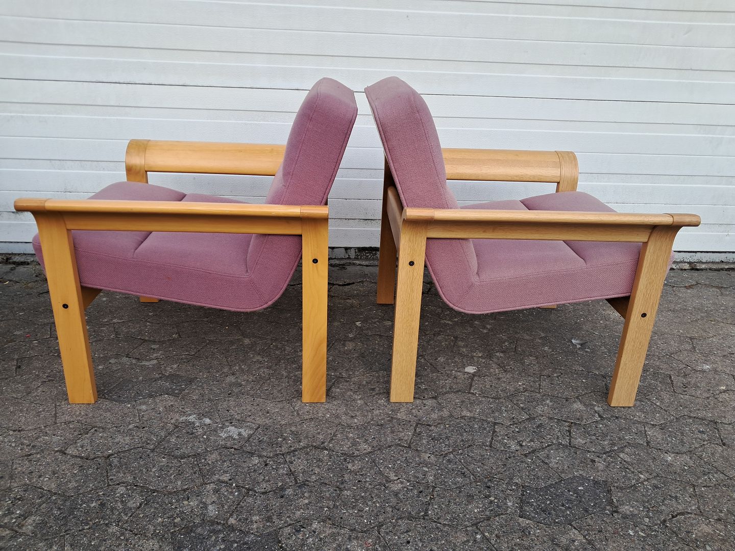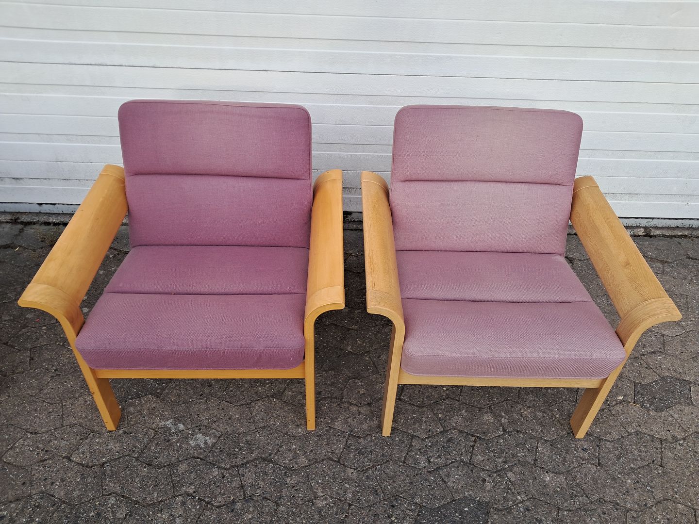 Sofa og en stol i egetræ og en stol i bøgetræ.
