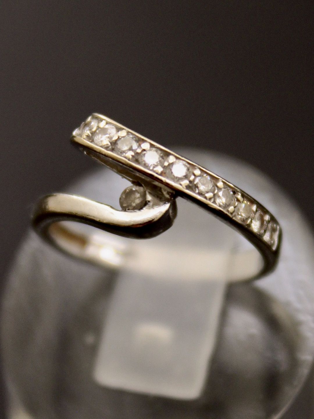 14 karat hvidguld ring størrelse 48 med adskillige diamanter stemplet 14K emne nr. 618469