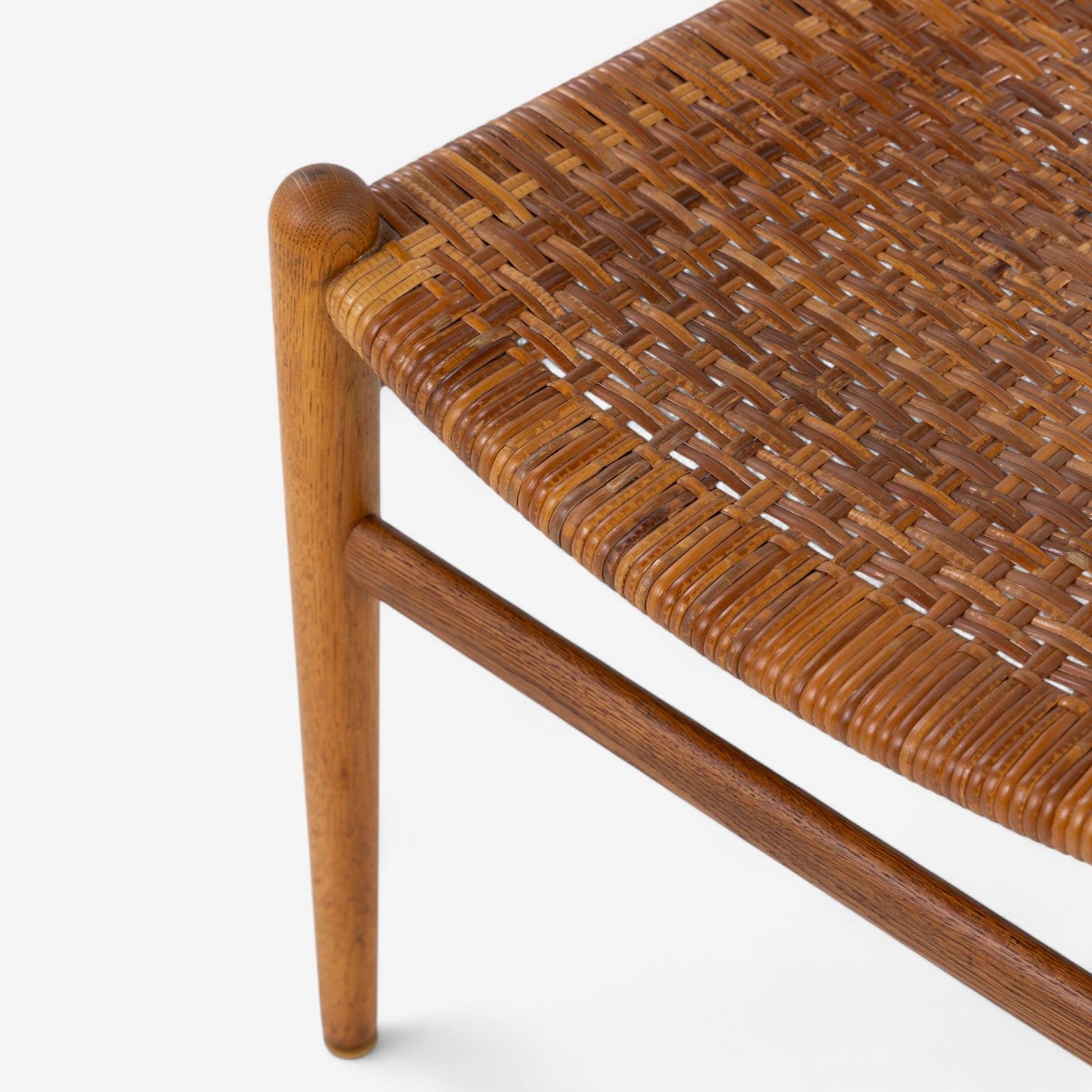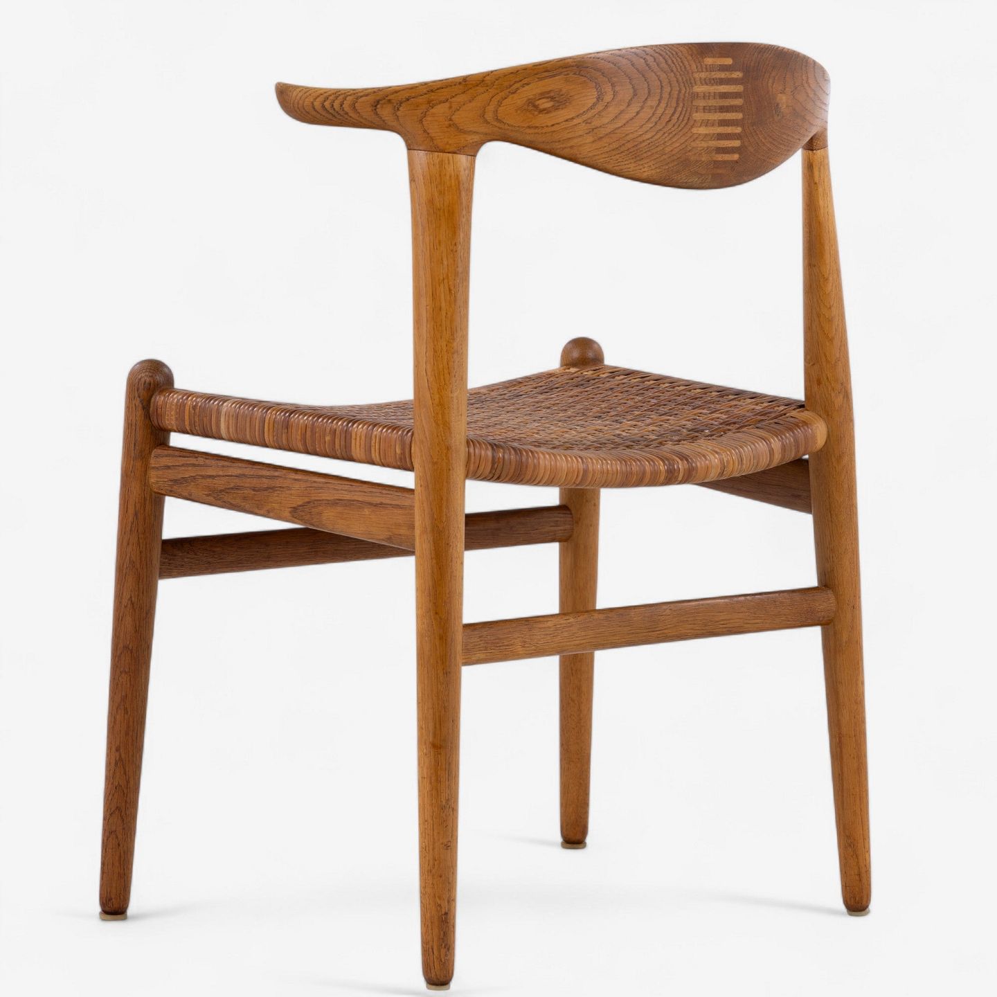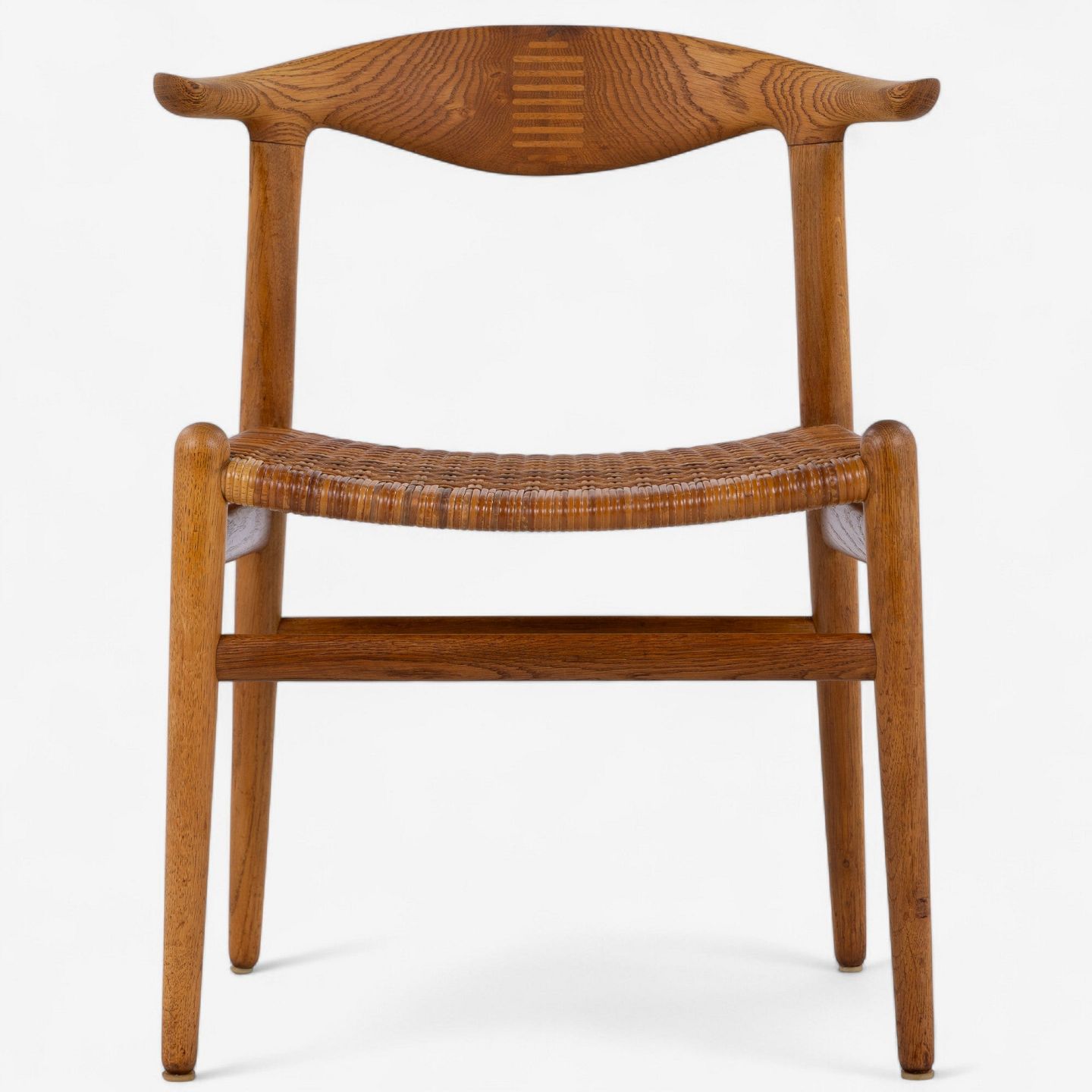 JH 505 - 'Cow Horn Chair' in patinated oak with original wicker seat. Designed in 1952.