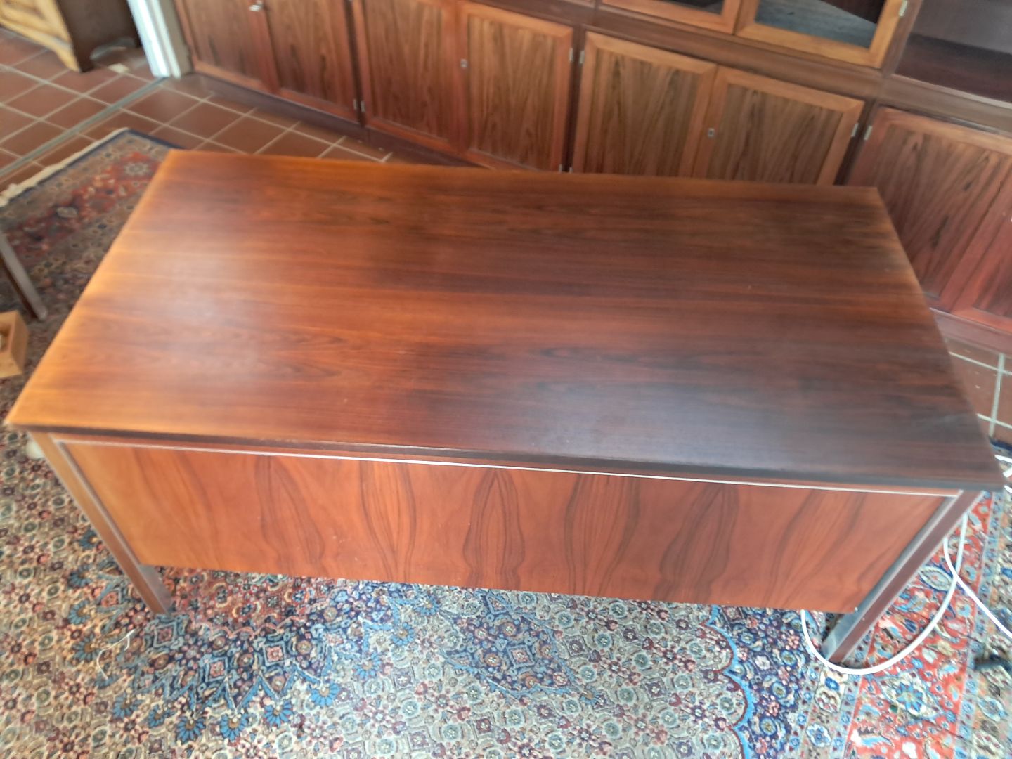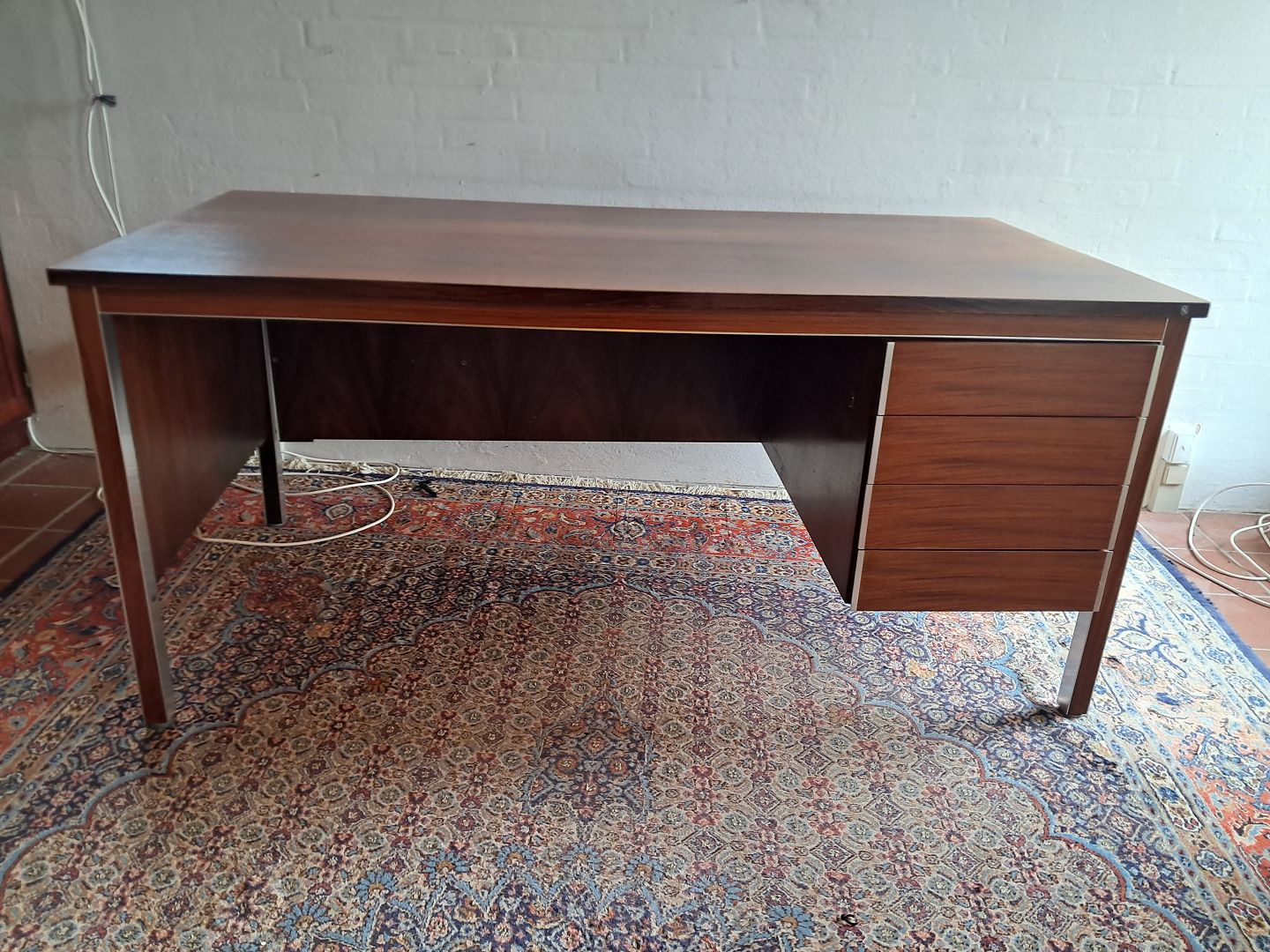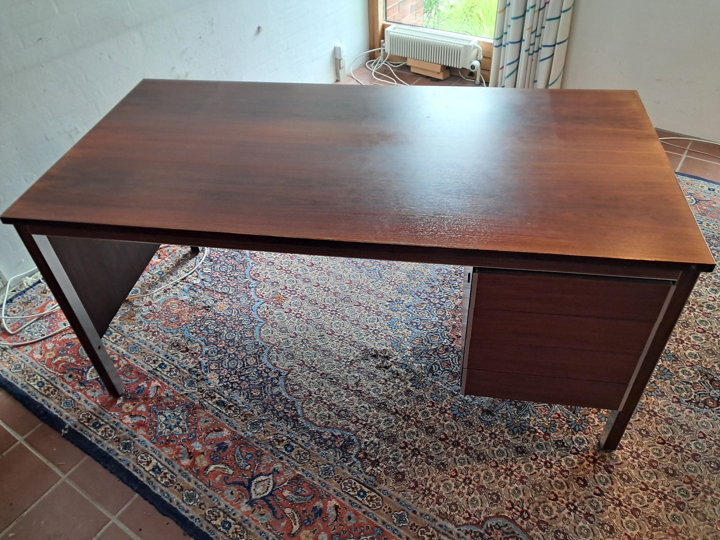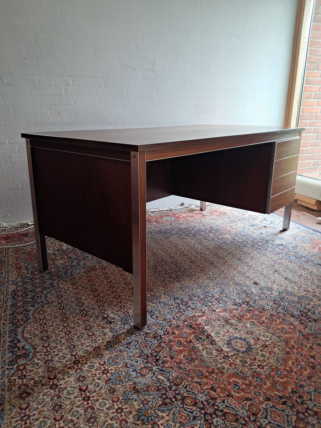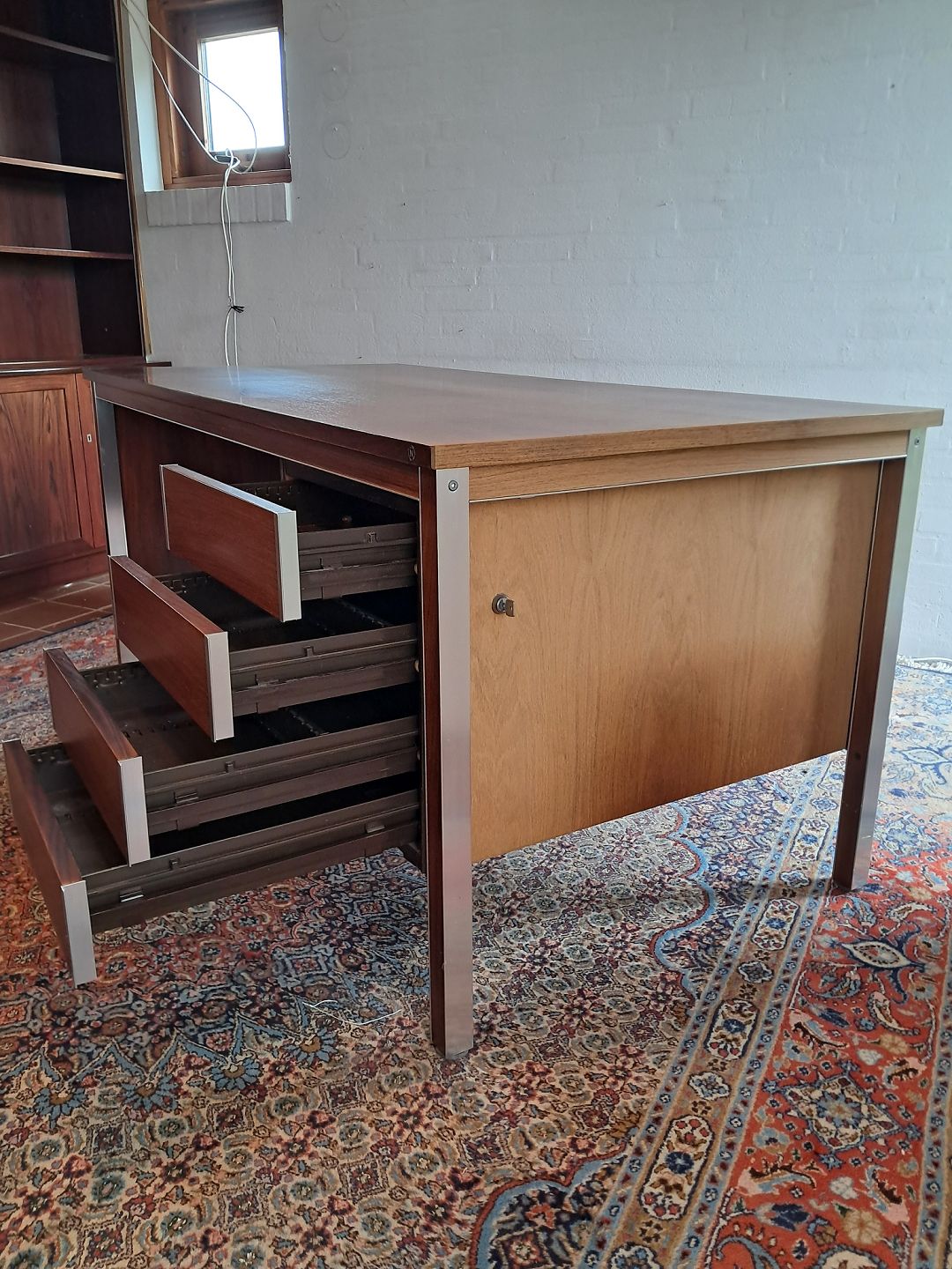 Skrivebord i fineret palisander og aluminium, fra 1970erne.