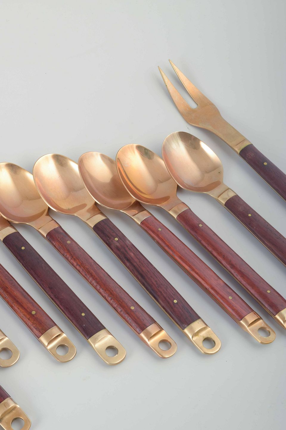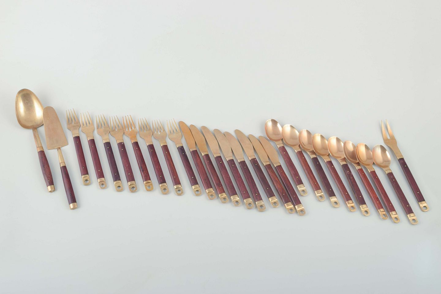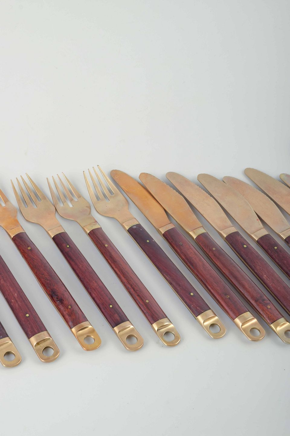 Brøste. Komplet 8-personers middagsbestik af bronze og rosentræ, model 222.