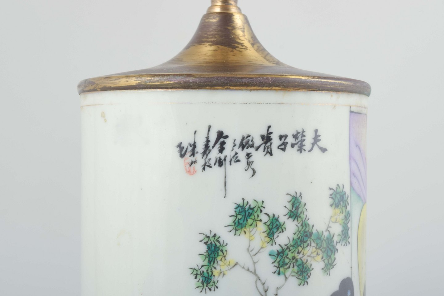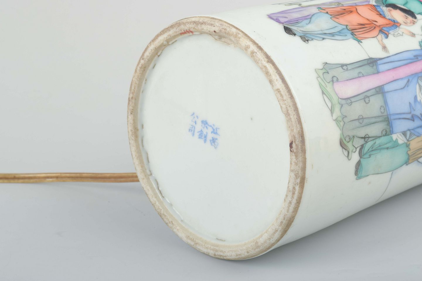 Kinesisk porcelænsbordlampe af cylinderformet vase. Sen Qing / Republikperioden (ca. 1900–1930).