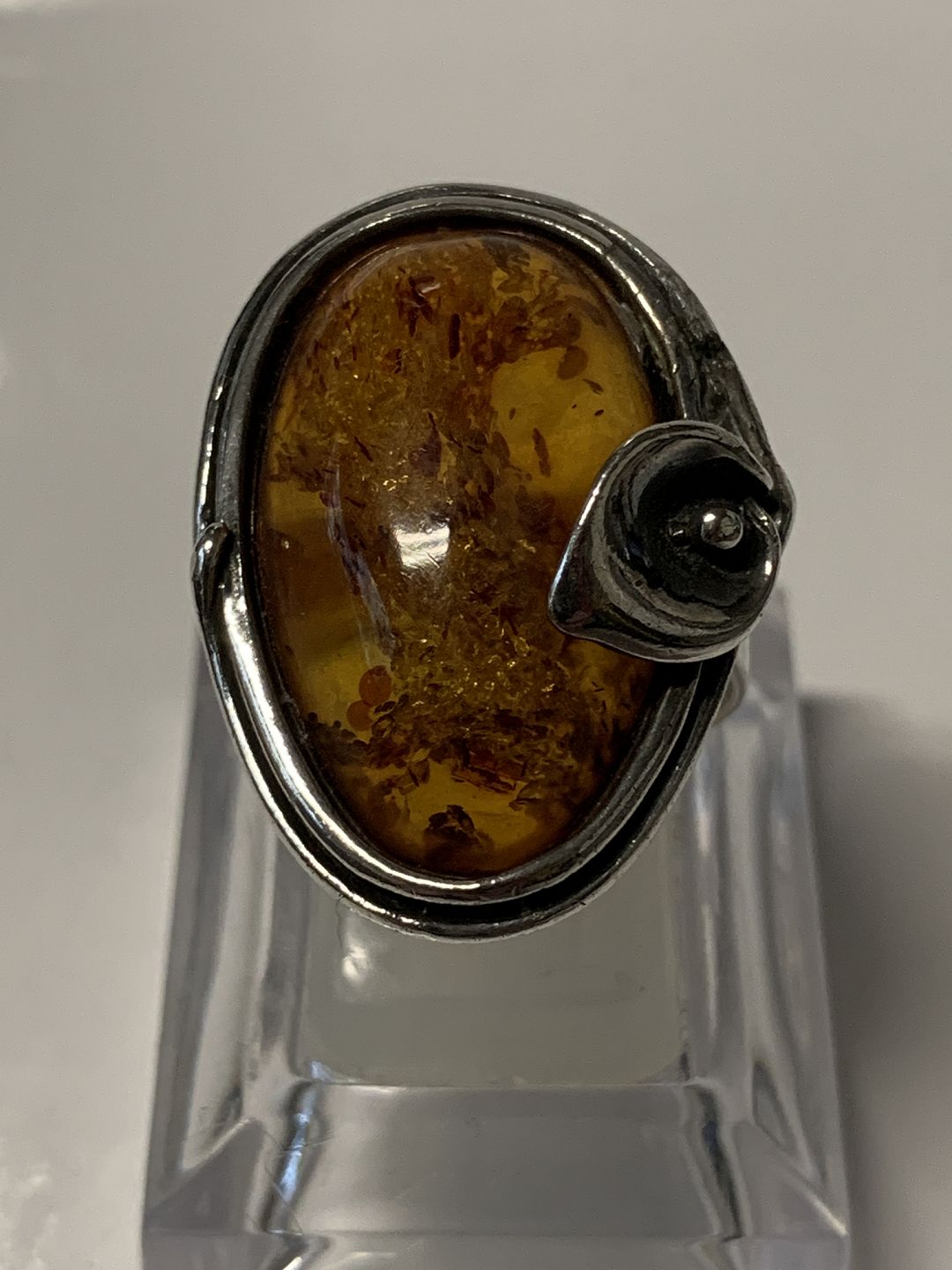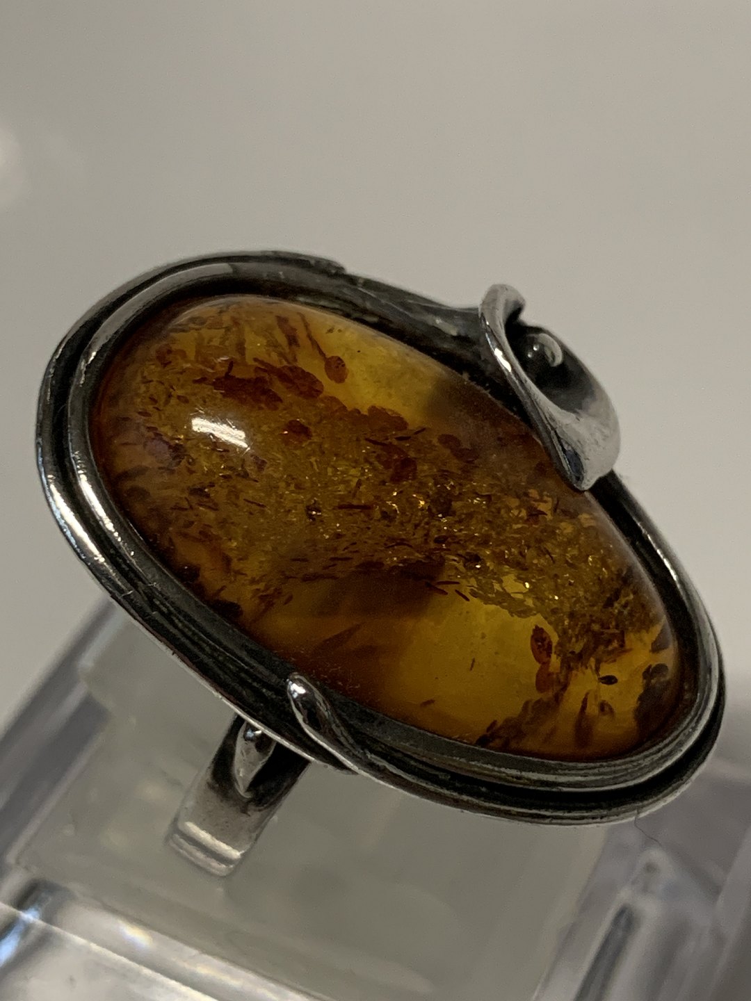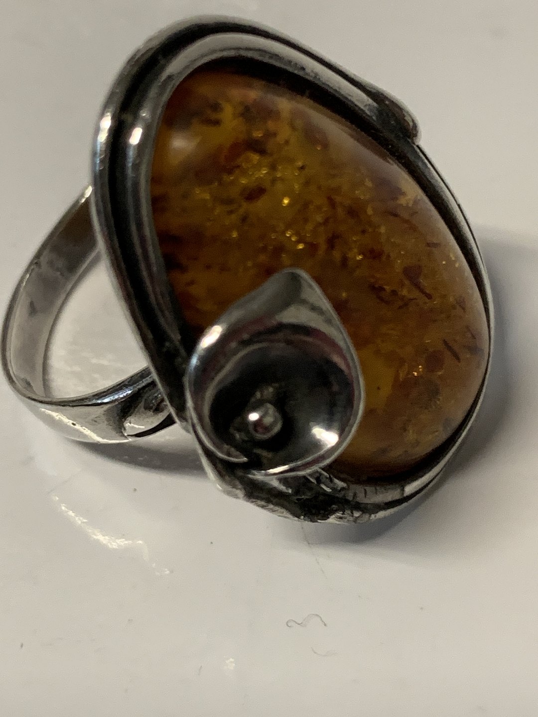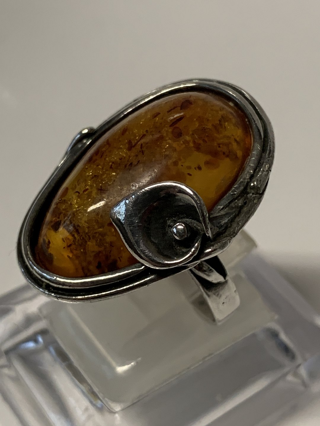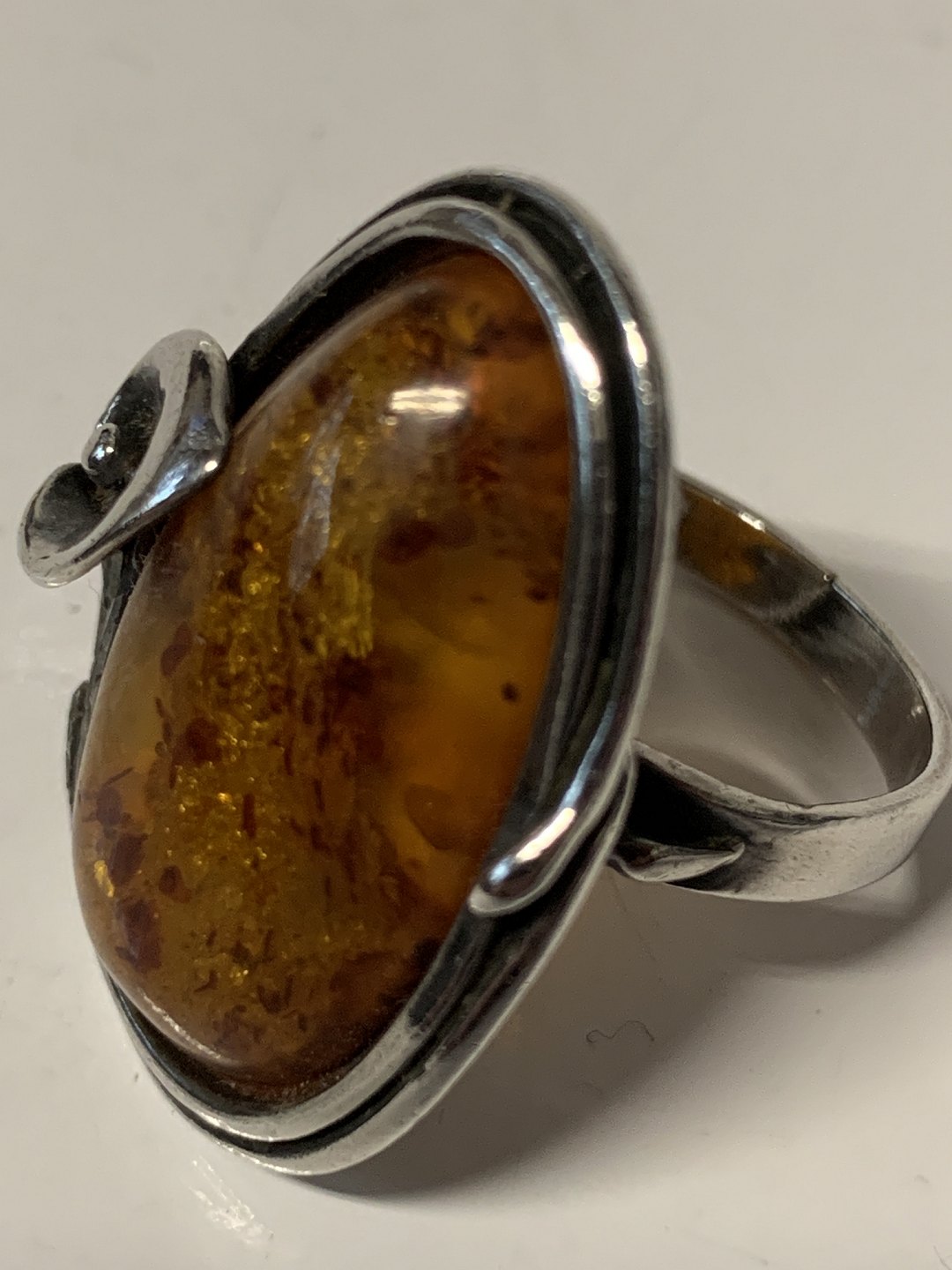 Vintage Damering i sterlingsølv med indlagt rav.