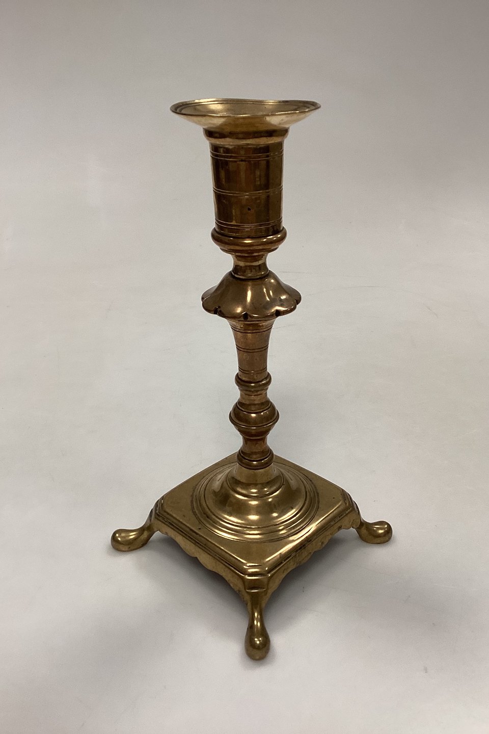 Antikke høje Lysestager i Messing, et par. Lettere slitage, buler og skævheder.