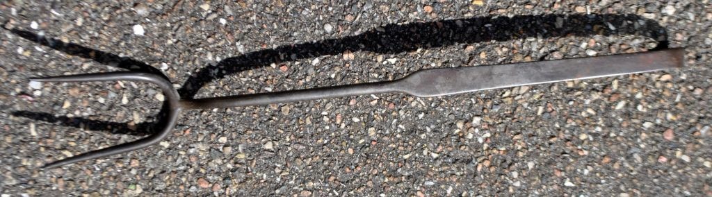 Stor antik jern stege gaffel. 18,/19. årh. Danmark. L. 43 cm.
