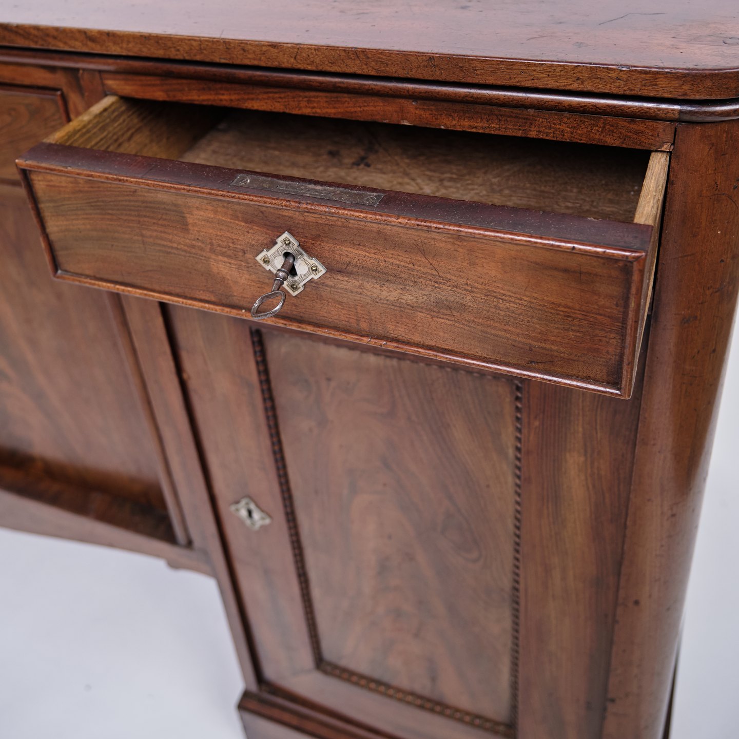 Skrivebord / Skænk i mahogni fra 1860’erne. Engelsk stil. H: 94 cm, B: 171 cm, D: 66,5 cm. Klassisk antikt møbel.