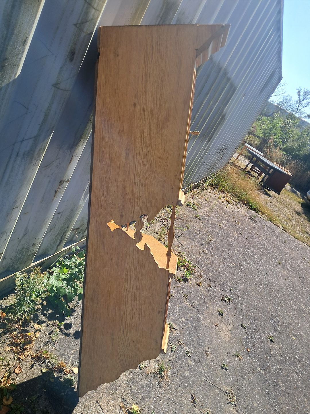 Væg-hjørneskab i fineret egetræ, fra 1980erne.