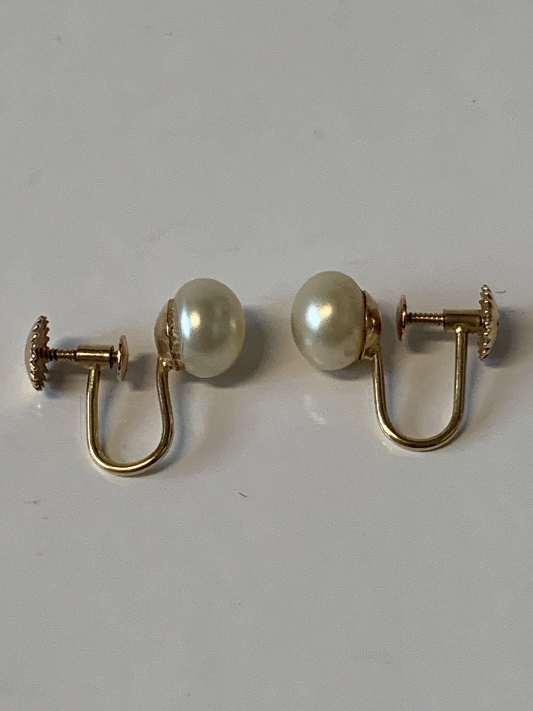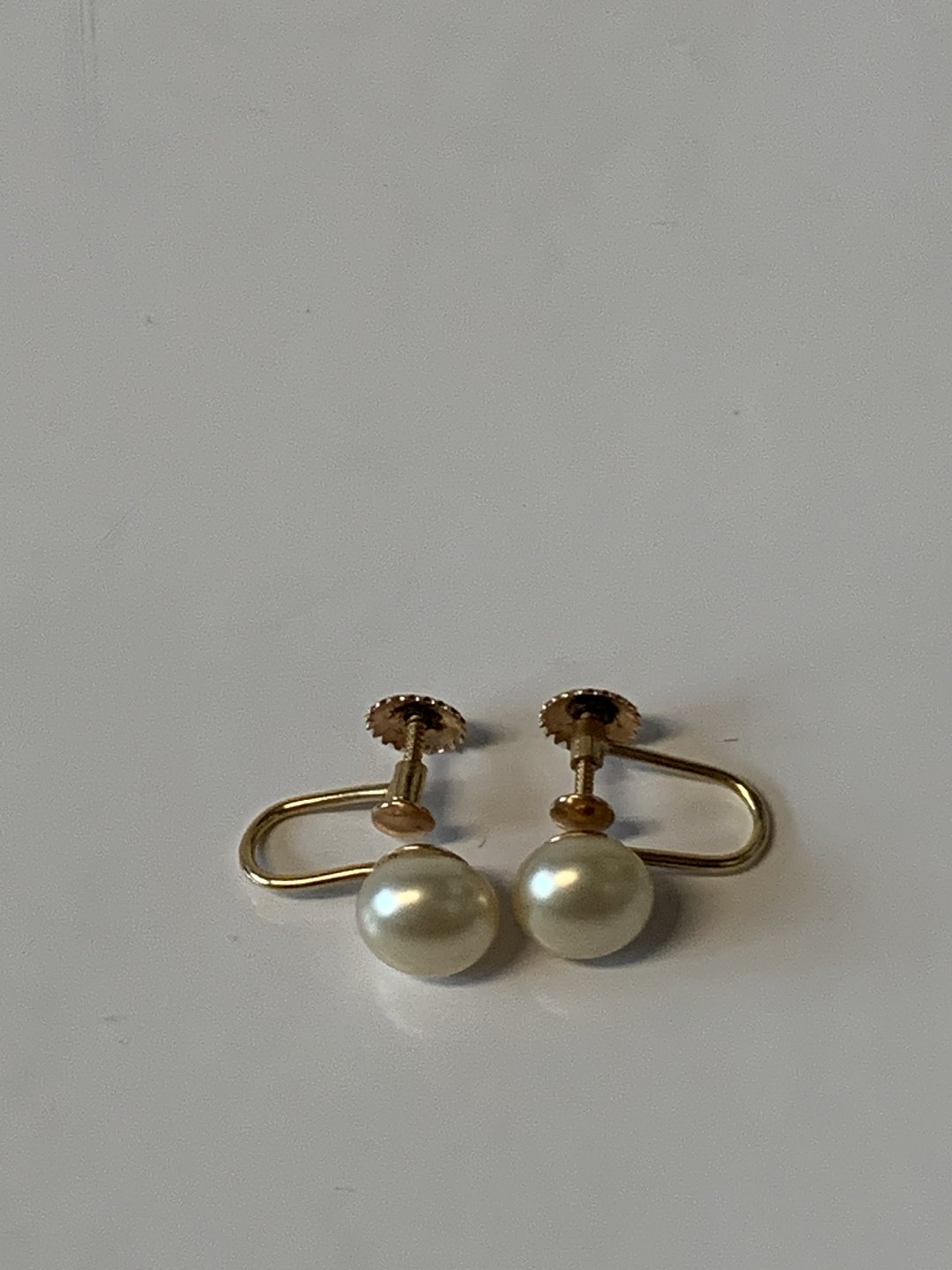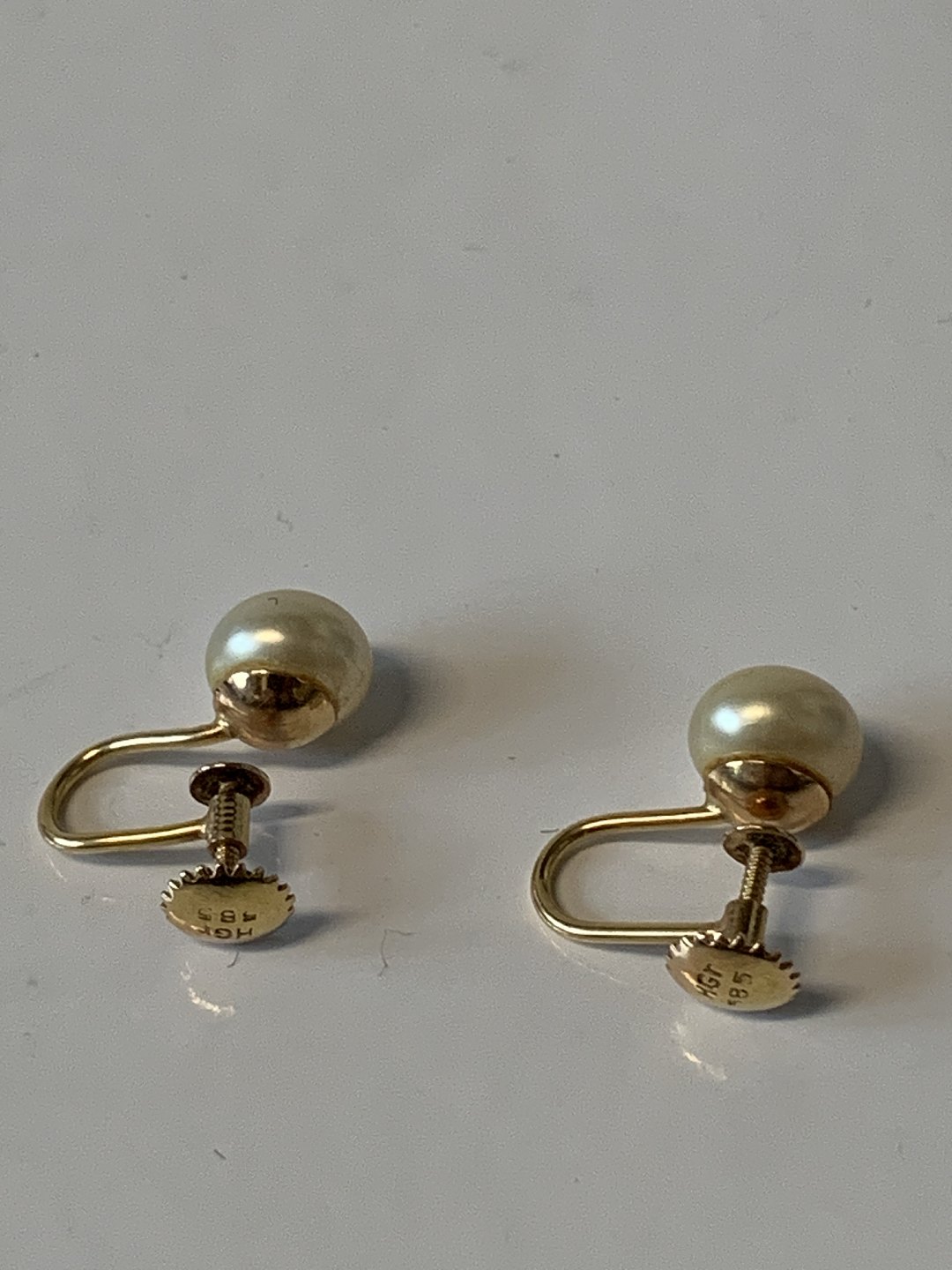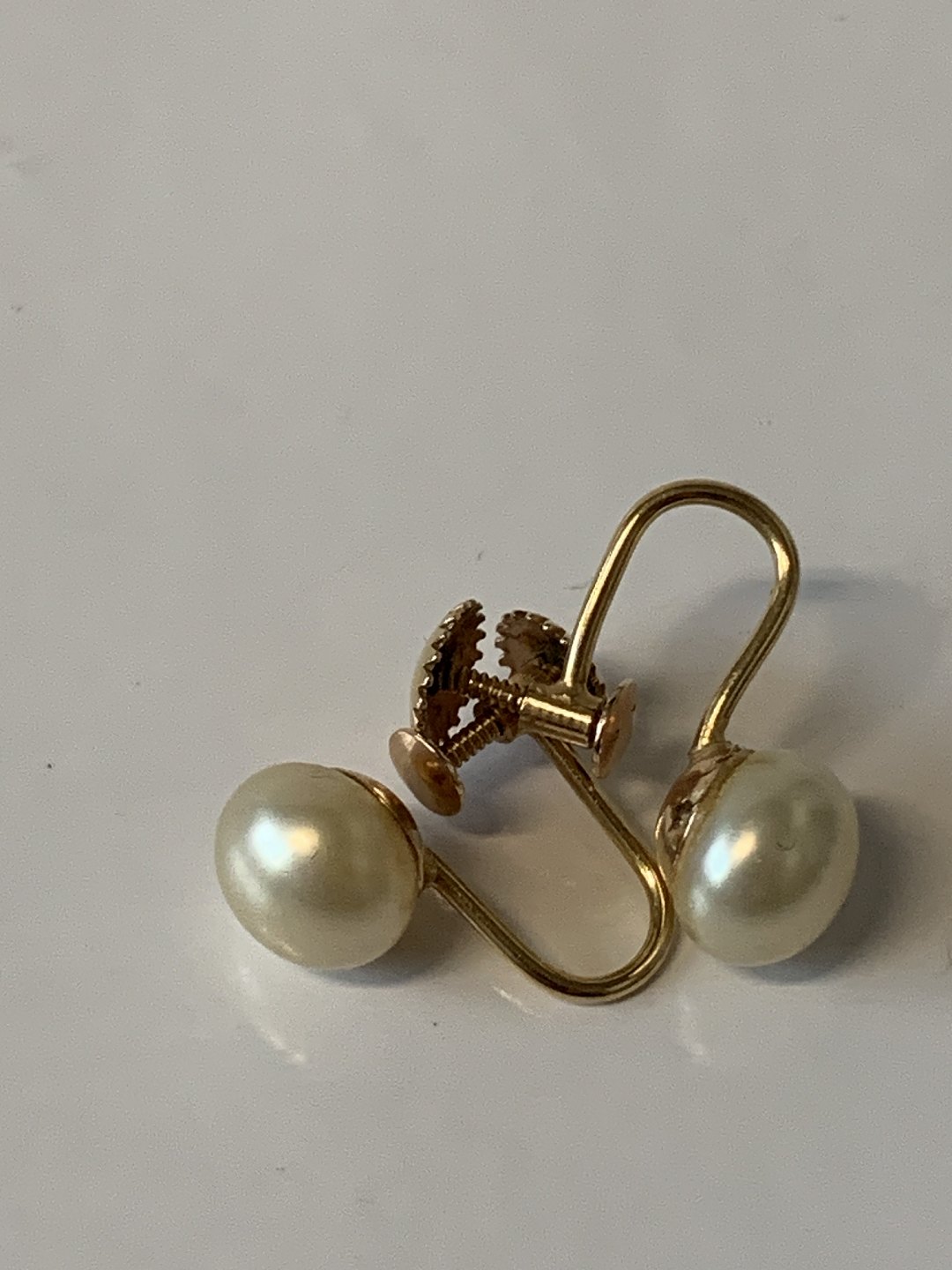 Øreringe med perle, 14 Karat Guld med Skruelås.