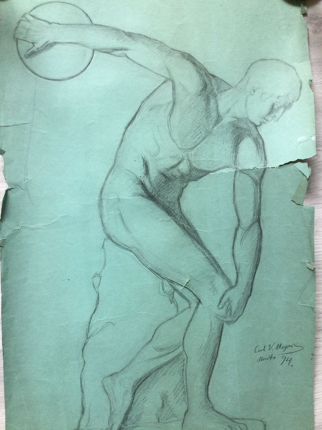 Akademitegning af Carl V. Meyer - Diskoskasteren 1894.