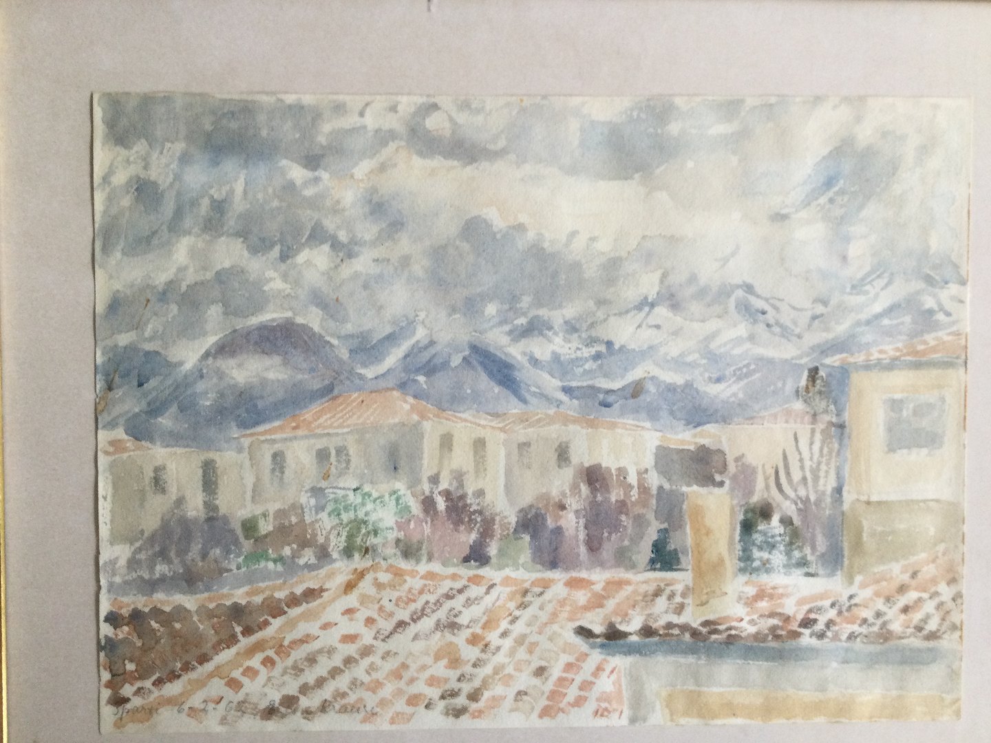Akvarel af Ellen Krause Rørup - Parti fra Sparta 1962