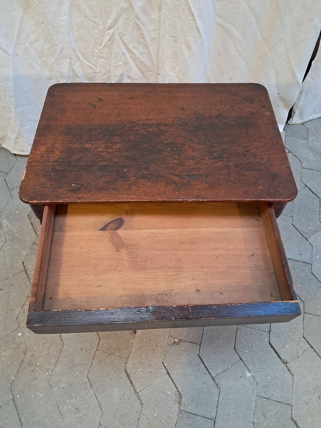 Sidebord i massivt fyrretræ og fineret bøgetræ, fra 1900erne.