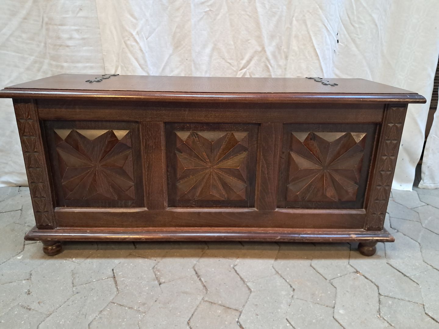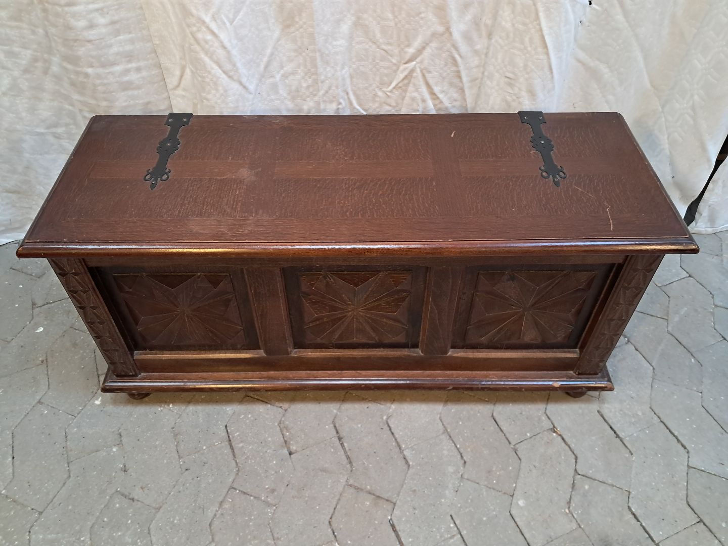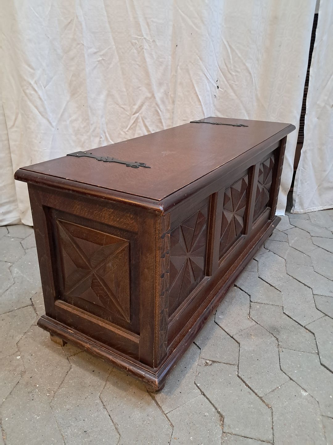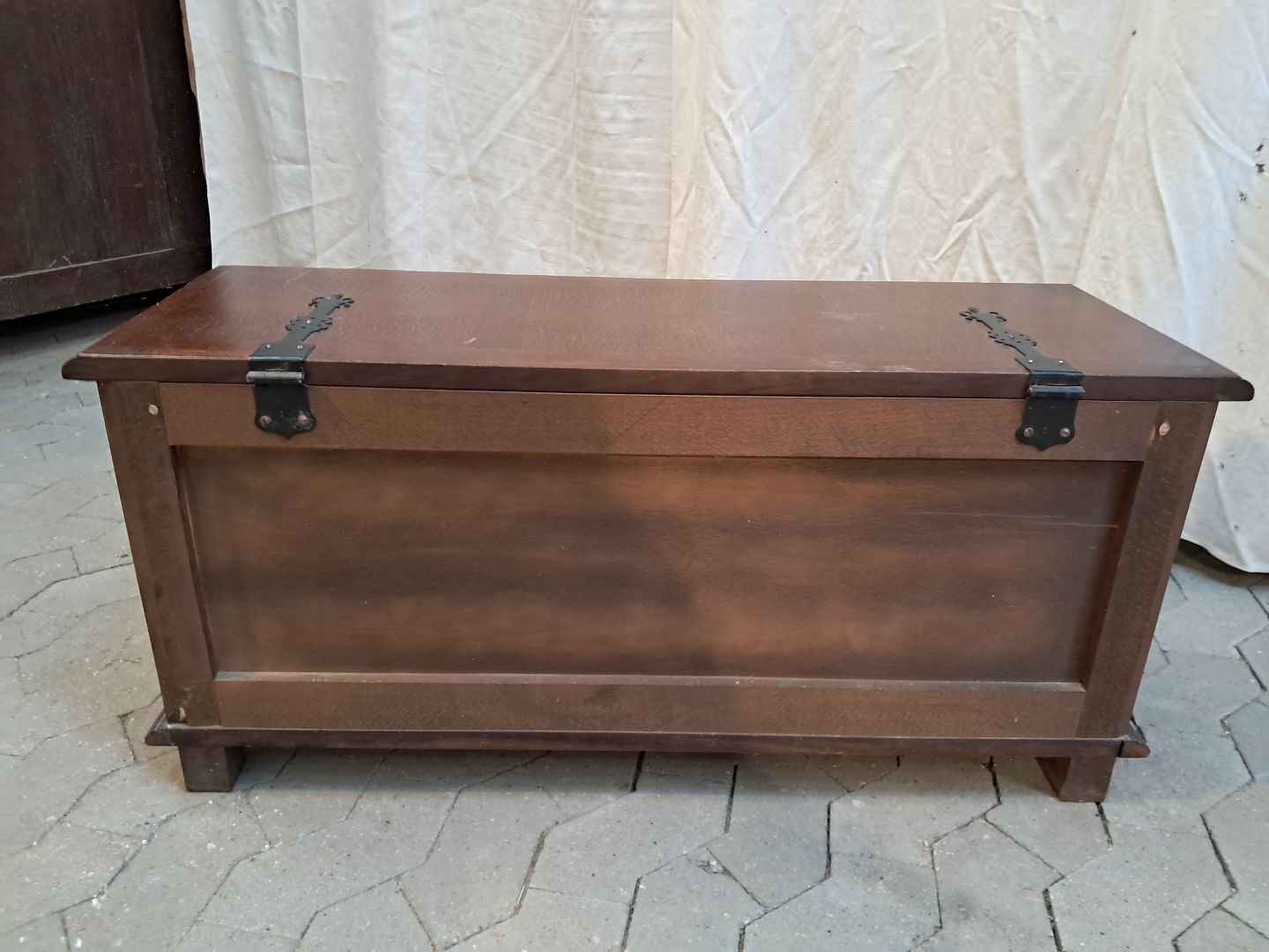 Kiste i fineret egetræ, fra 1980erne.