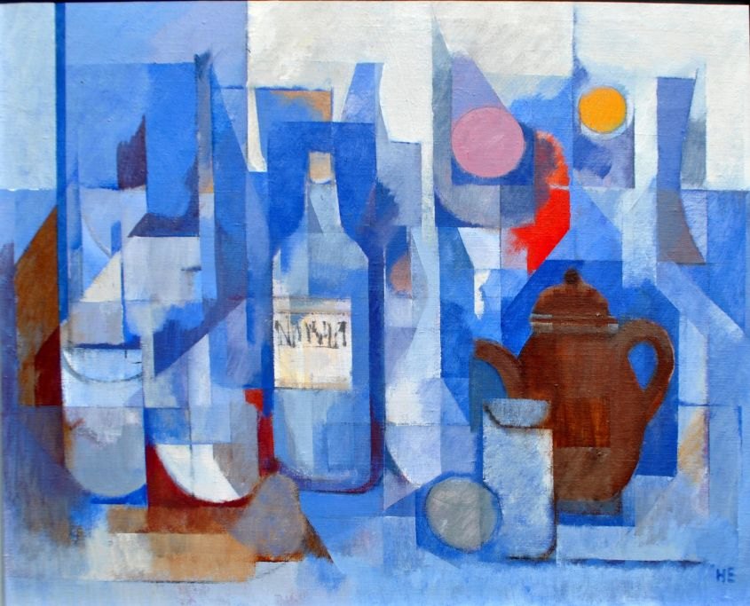 Ernst, Helge (1916 - 1991) Danmark: Opstilling med tekande. Olie på lærred. Signeret. 60 x 73 cm.  Indrammet: 66 x 78 cm.  Verso signeret: Helge Ernst 1988/1989. Udstillet: Art Gallery, Aarhus.  NB: Der ydes ingen rabat på dette lot!