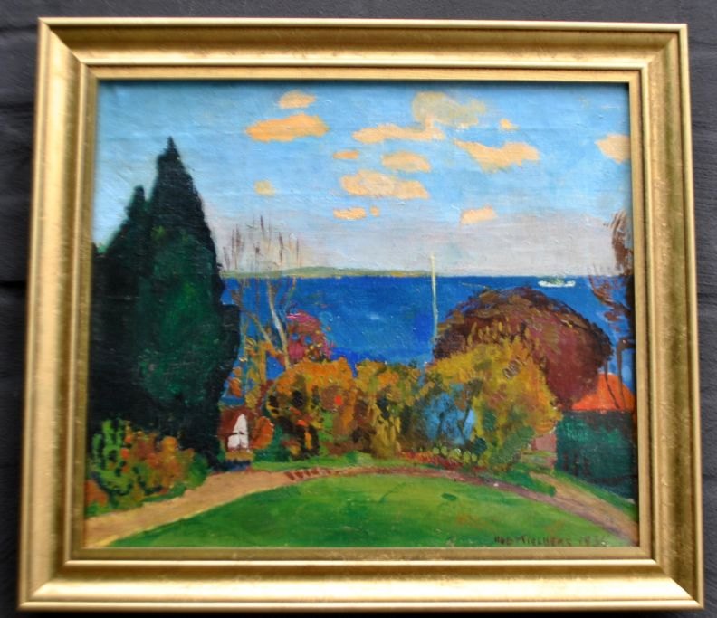 Kielberg, Ole (1911 - 1985) Danmark: Udsigt over Øresund, 1935. Olie på lærred. Signeret: Ole Kielberg 1935. H: 35,5 cm. B: 39,5 cm.