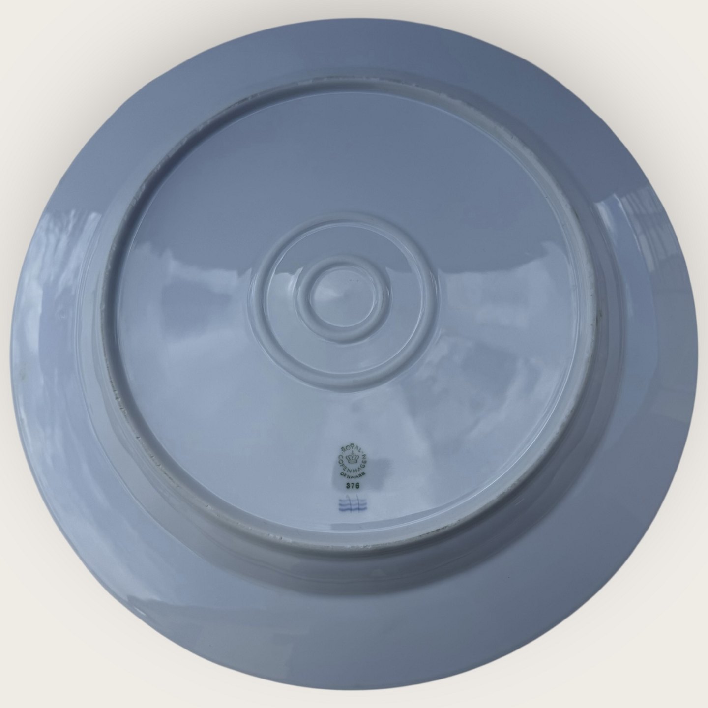 Royal Copenhagen, Hvidt kantet uden dekoration, Rundt serverings fad #373, 33cm i diameter, 3. sortering, lidt ujævnheder på nederste kant (se foto) ellers pæn stand.