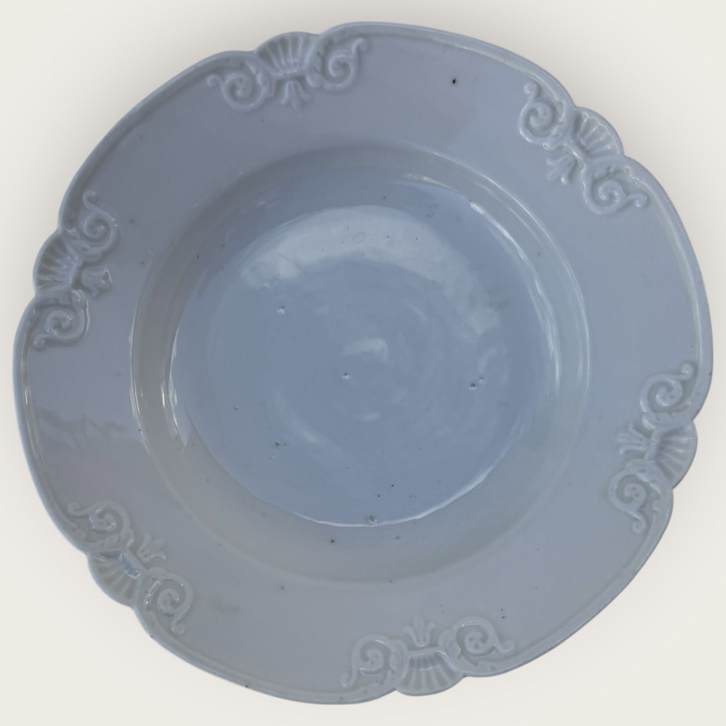Royal Copenhagen, Rokoko hvid, Dyb tallerken, 21,5 cm i diameter, fremstår med lidt småskrammer, vi har også 3 stk. med reparation til 100kr pr stk.