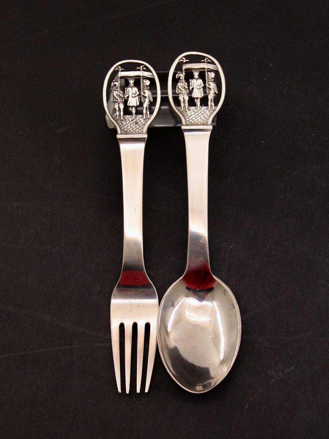 H C Andersen sæt barne bestik 14,5 cm. tretårnet sølv ingen graveringer emne nr. 620554