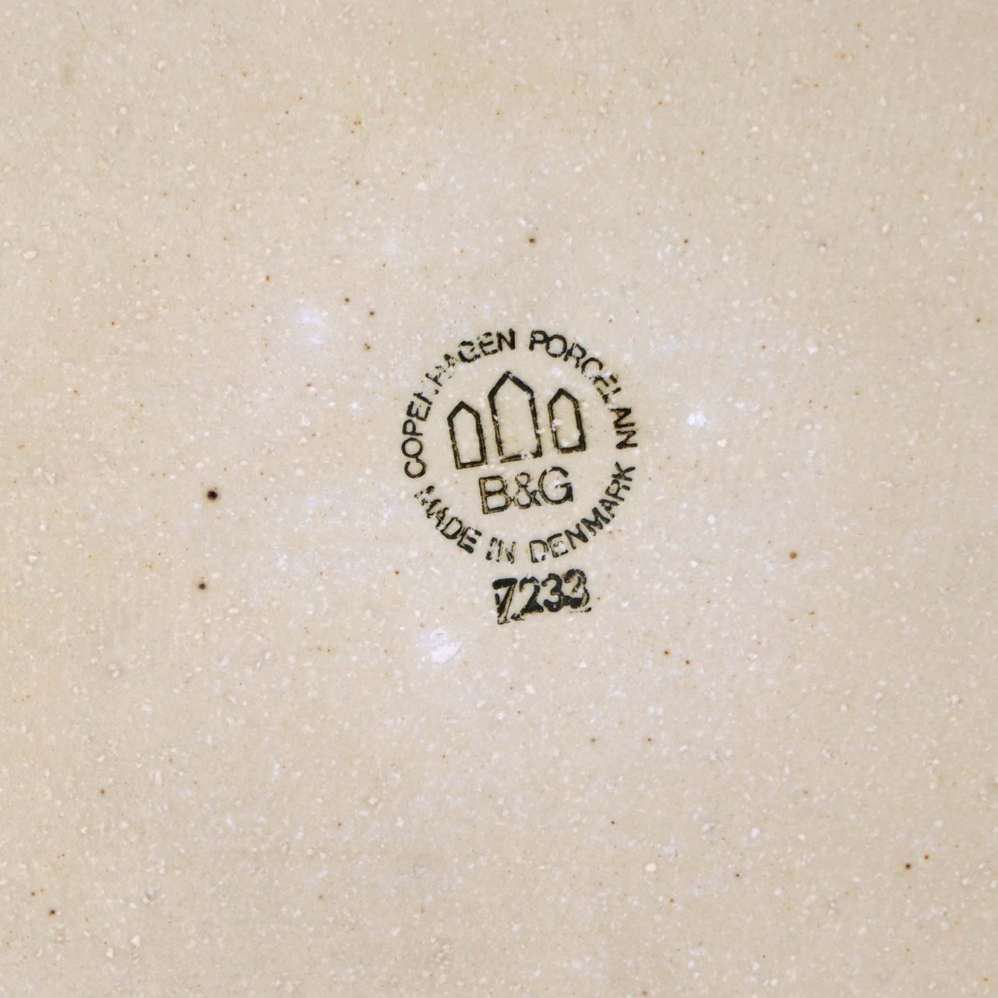 Firkantet bordfad i stentøj med brun glasur og geometrisk motiv. Nr. 7233