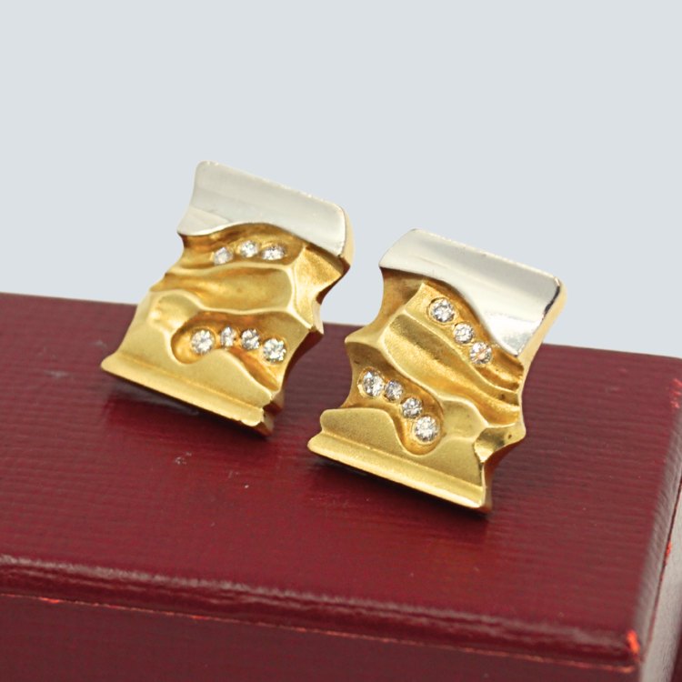 Brian Thomsen; Par øreclips i 18 kt. guld. prydet med diamanter.