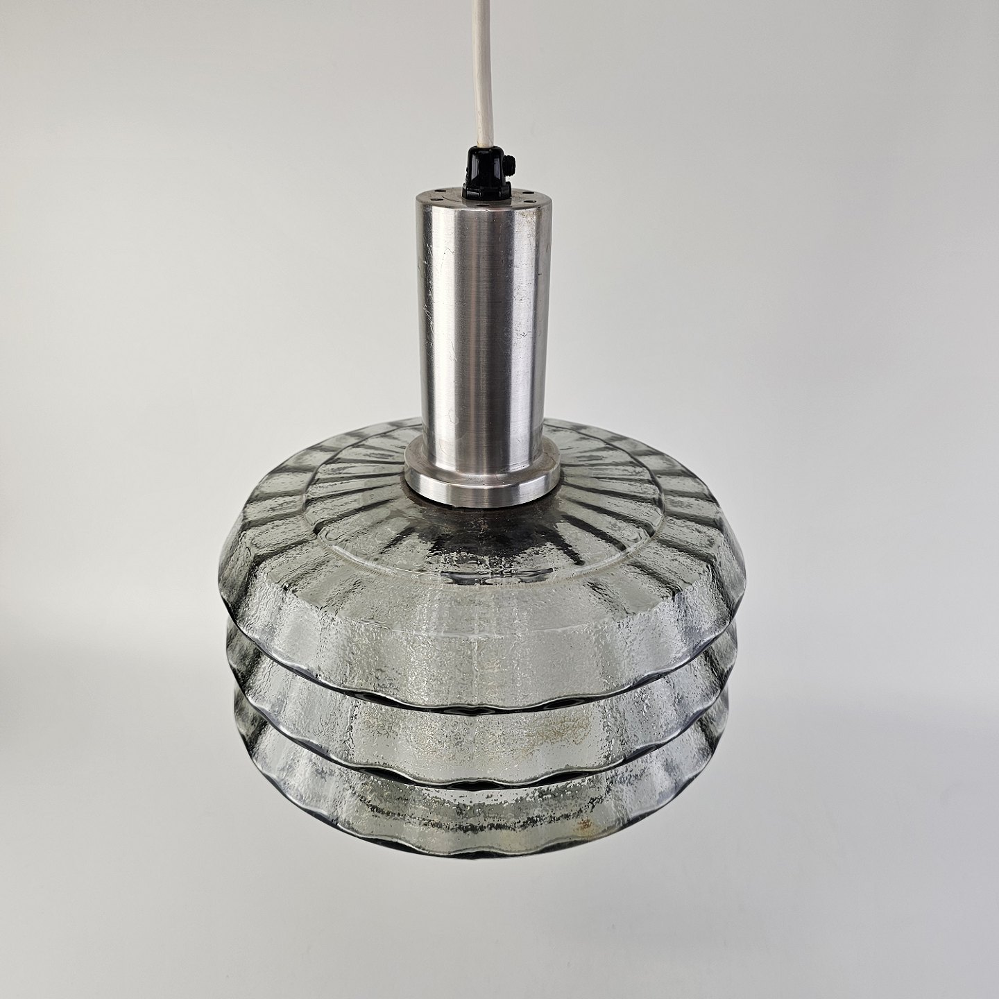 Pendel med skærm i grå-farvet glas i bølget mønster i tre lag.