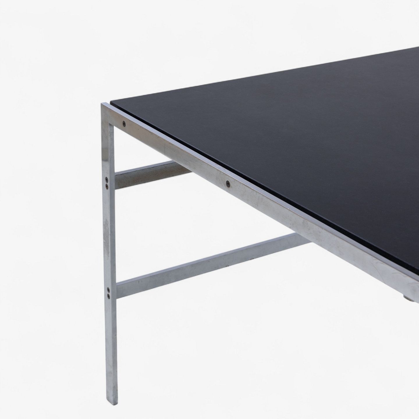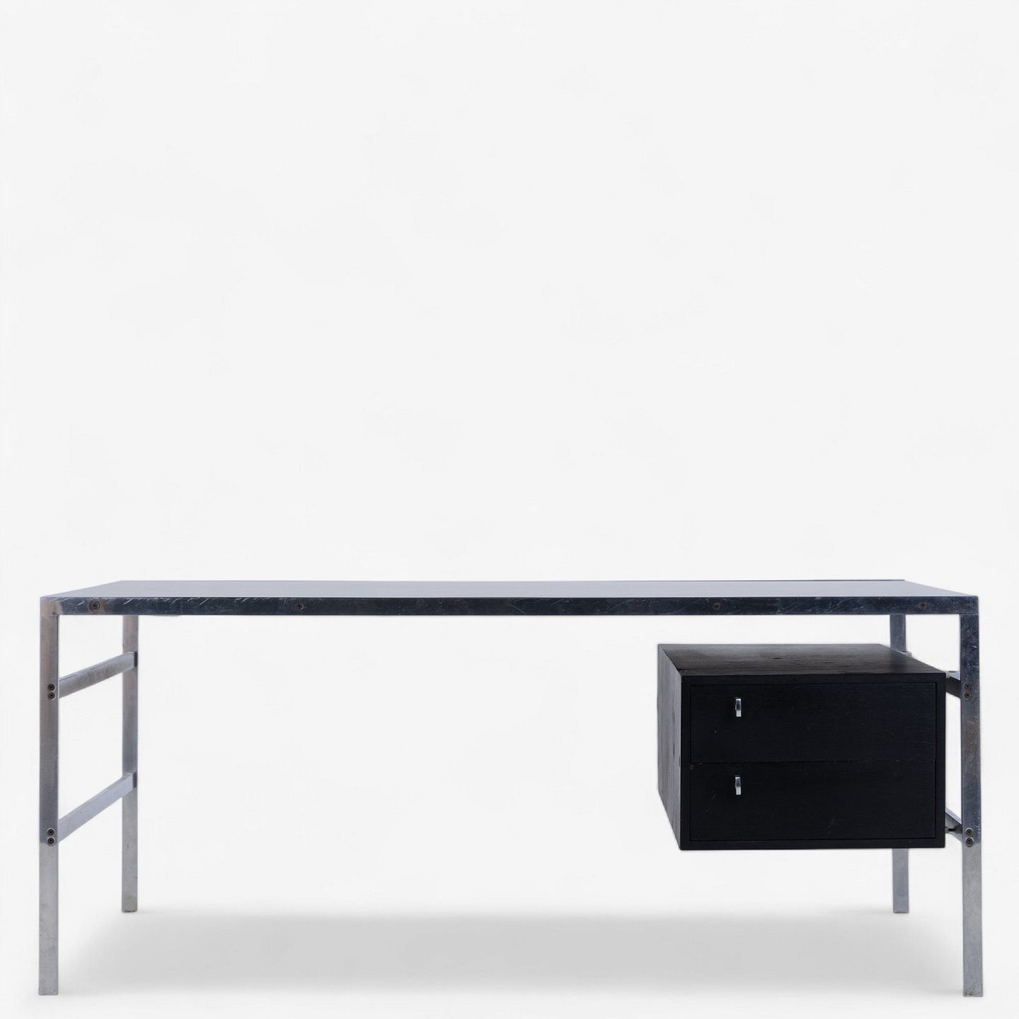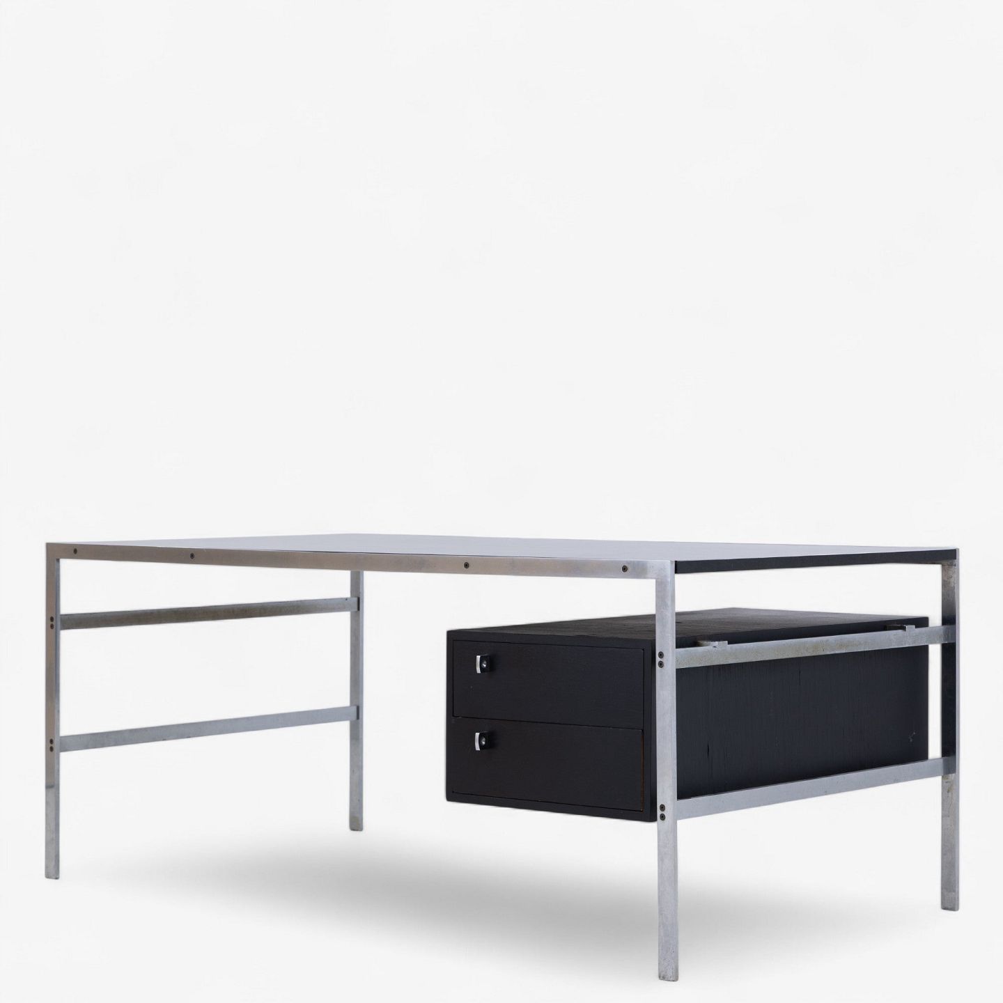 BO 550 - Skrivebord i stål med plade i 'Nero Assuloto'-granit med skuffemodul i sort wengé.