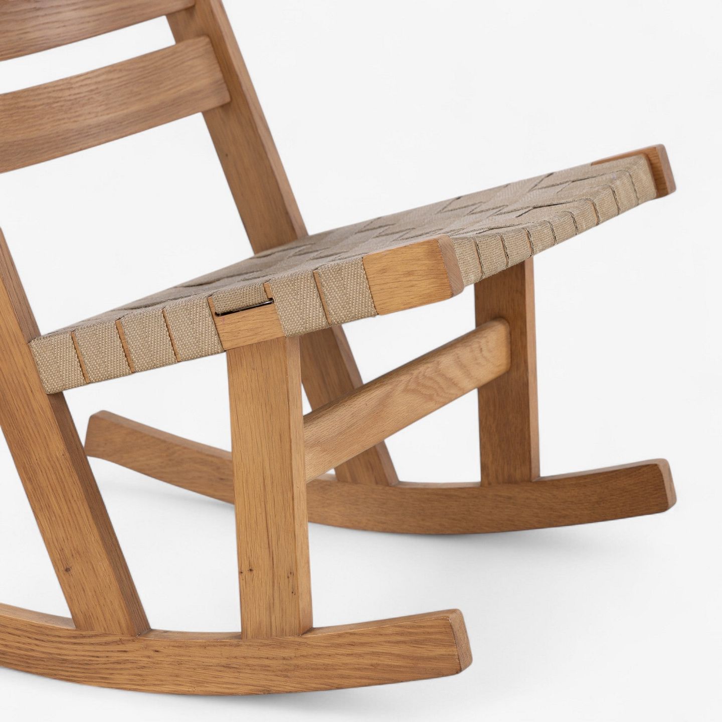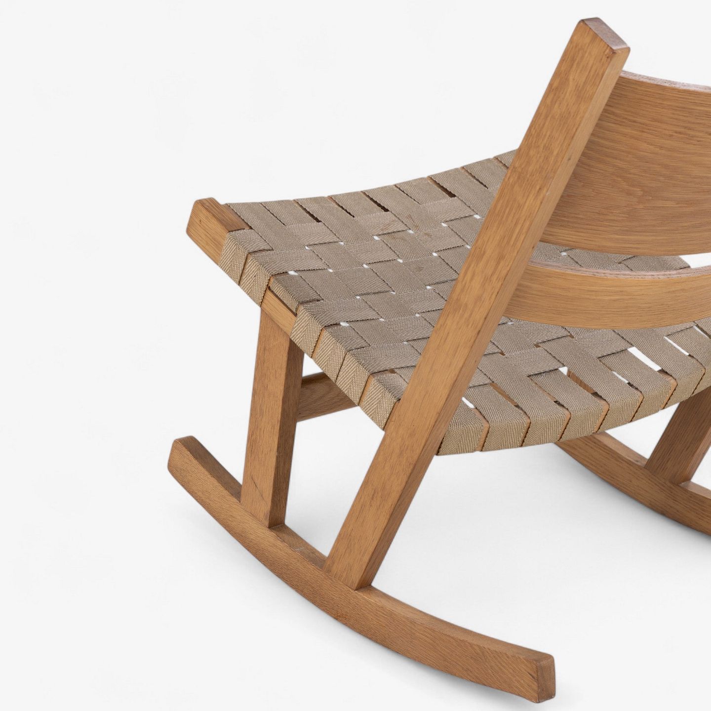 GE 674 - Gyngestol med stel i eg og sæde med patinerede gjorde.