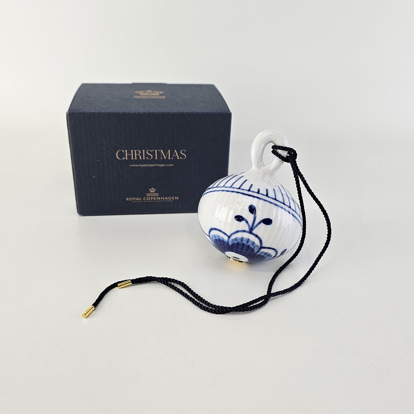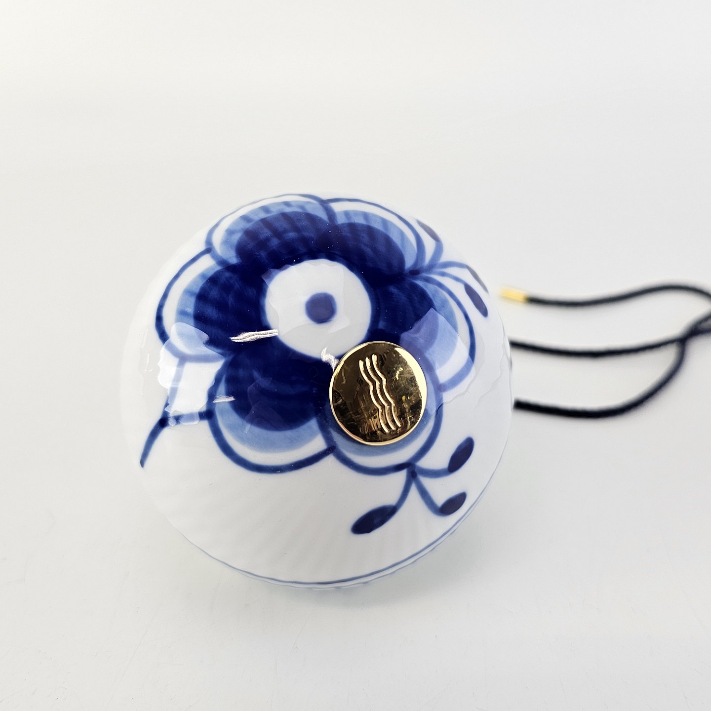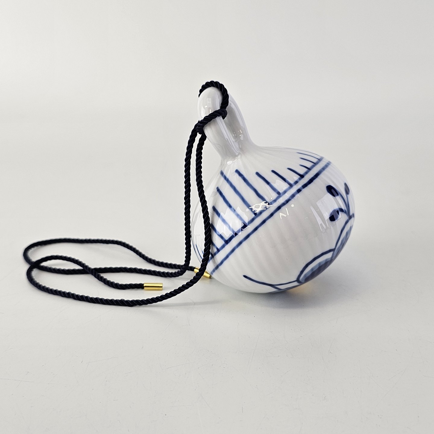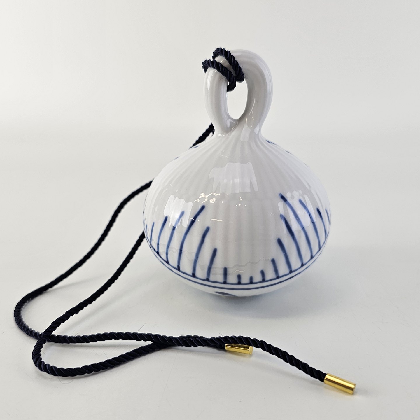 Julekugle af porcelæn med blå mega riflet musselmalet mønster