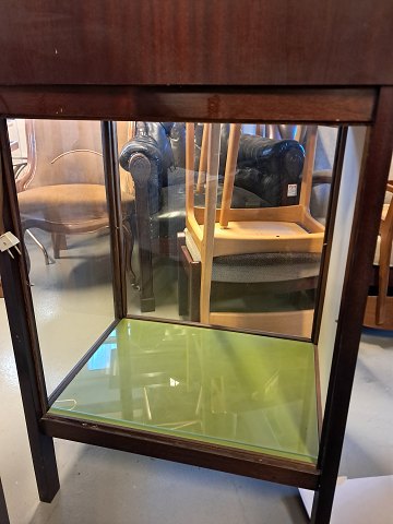 Skrivepult i fineret mahogni og glas, fra 1980erne.