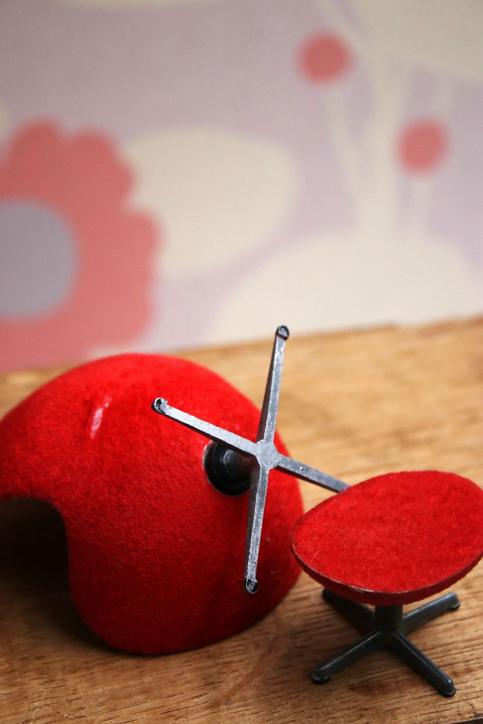 Syver stole i rød plast, H: 5,6cm. - PRIS: 250 kr. pr. stk. (2 stk.)