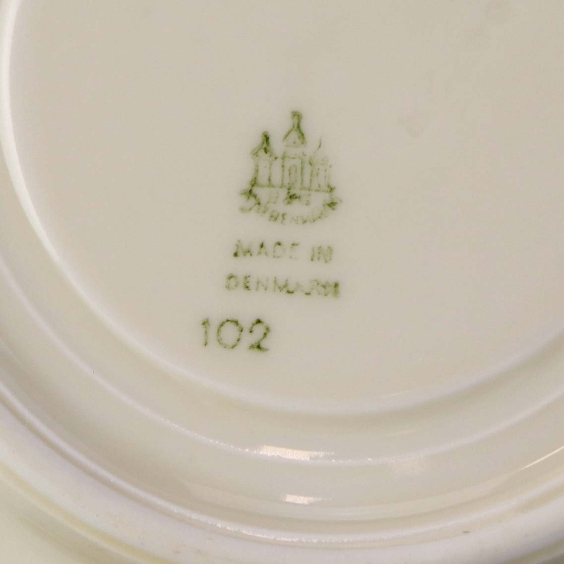 Heimdal er cremefarvet porcelæn i skælform, som dekoreret med jasminblomster, grene og en guldkant.