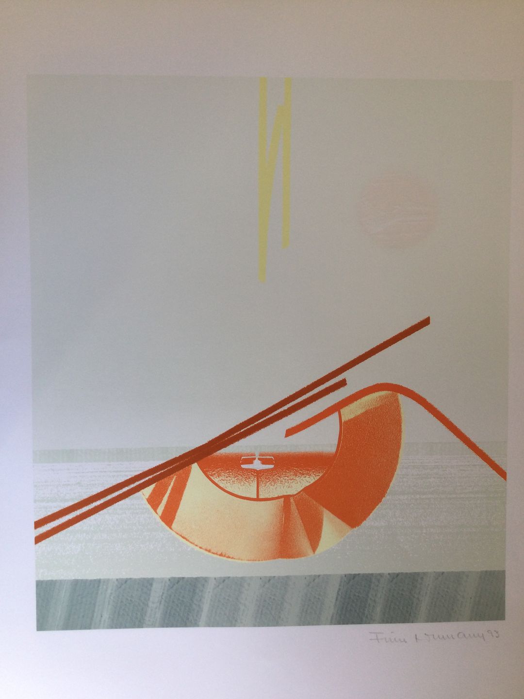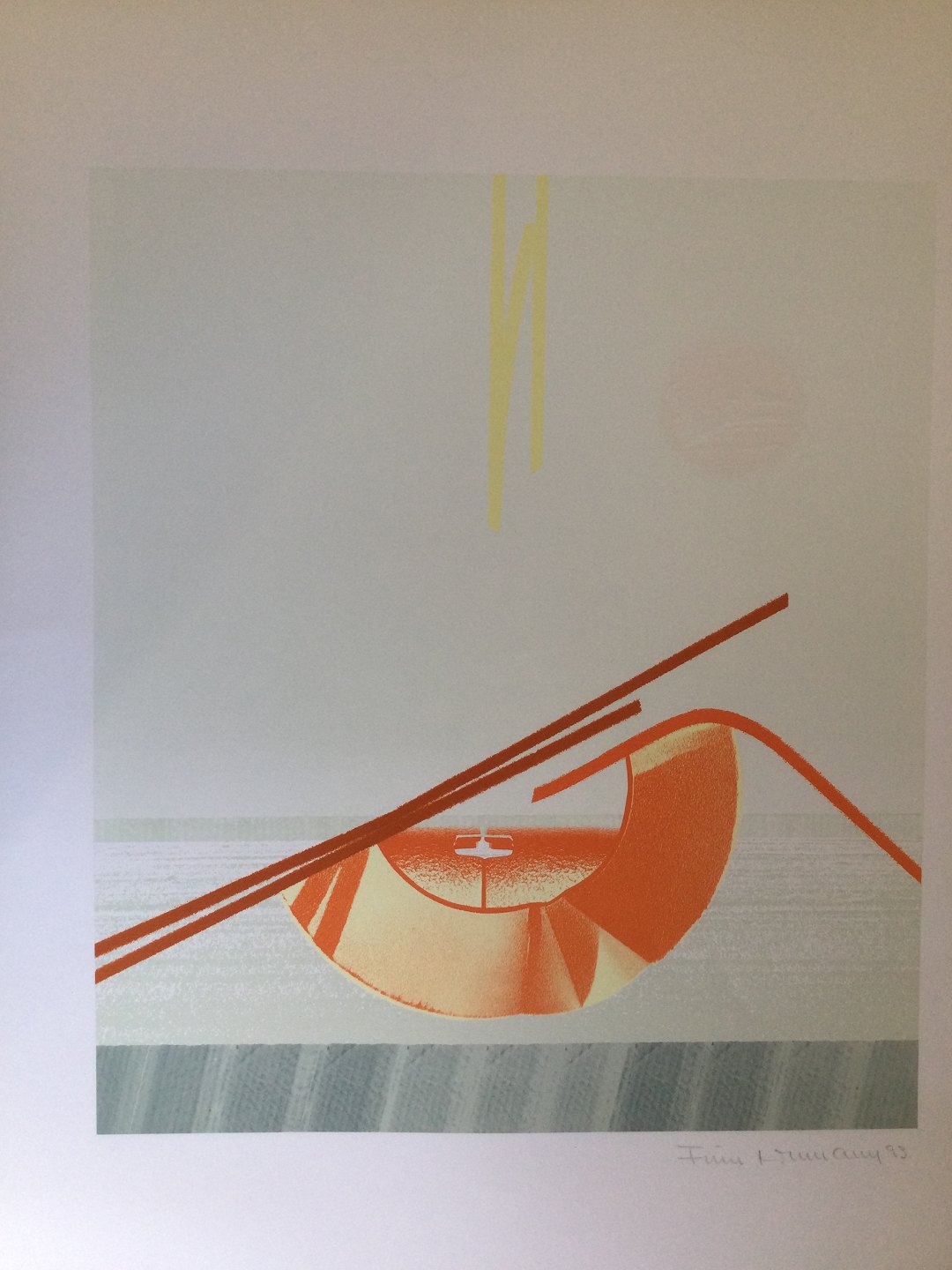 Text available in Danish: Farvelitografi af Finn Lohmann - Komposition 1993.