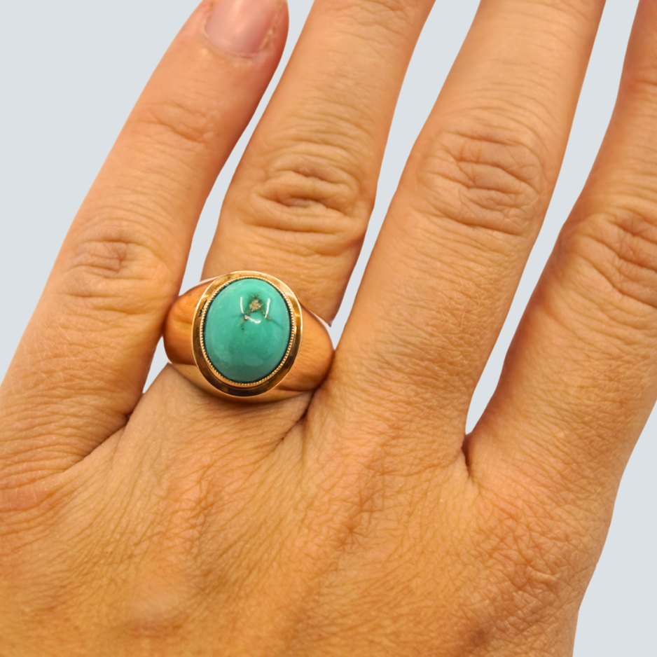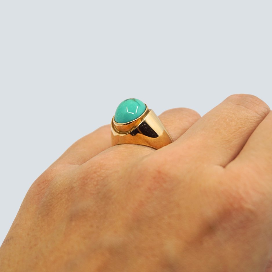 Ring of 14k gold, set with a turquoise. From around 1970.