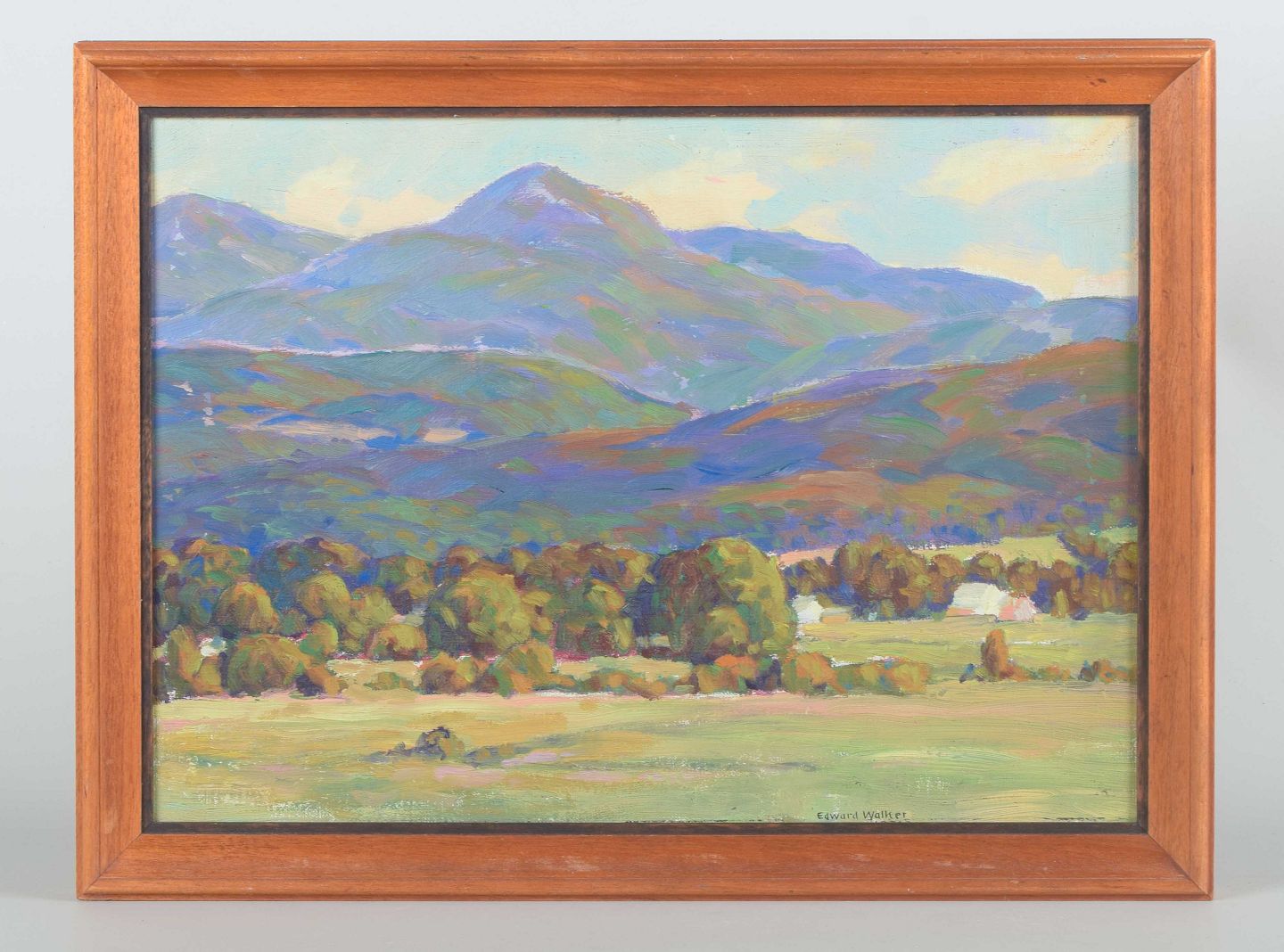 Edward Walker (1879–1955) was a British painter known for his landscapes and naturalistic depictions of the American countryside, particularly in Vermont. His works are marked by an impressionistic approach, where lively brushstrokes and a vibrant palette captured the shifting light and changing seasons of the landscape.
