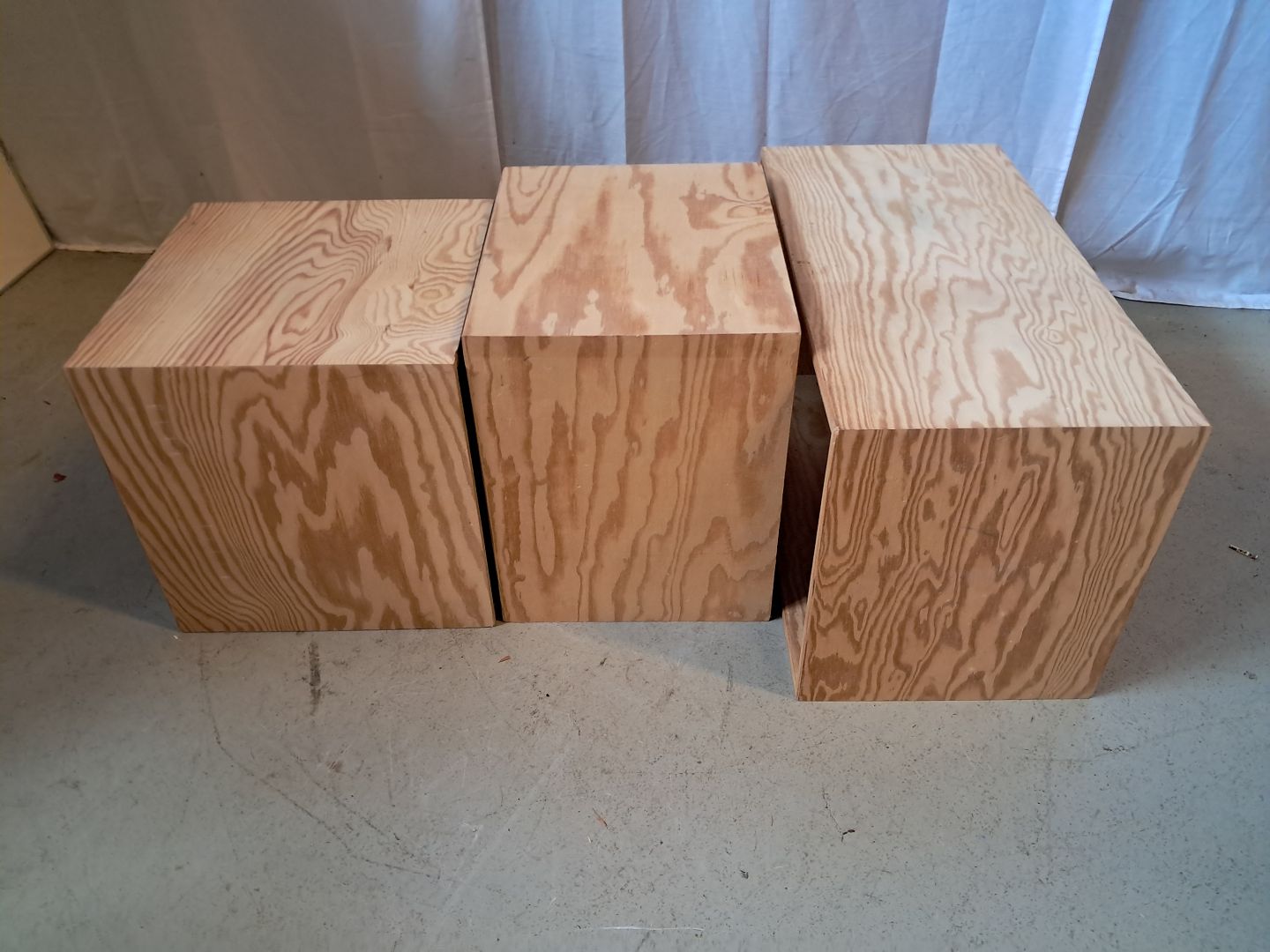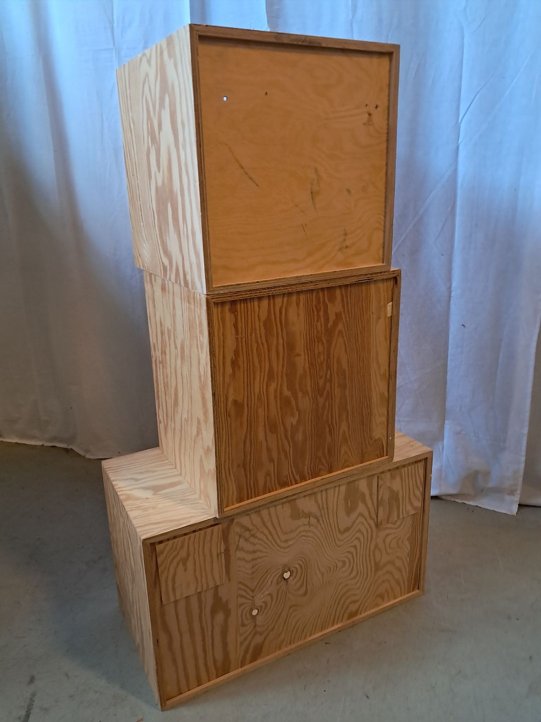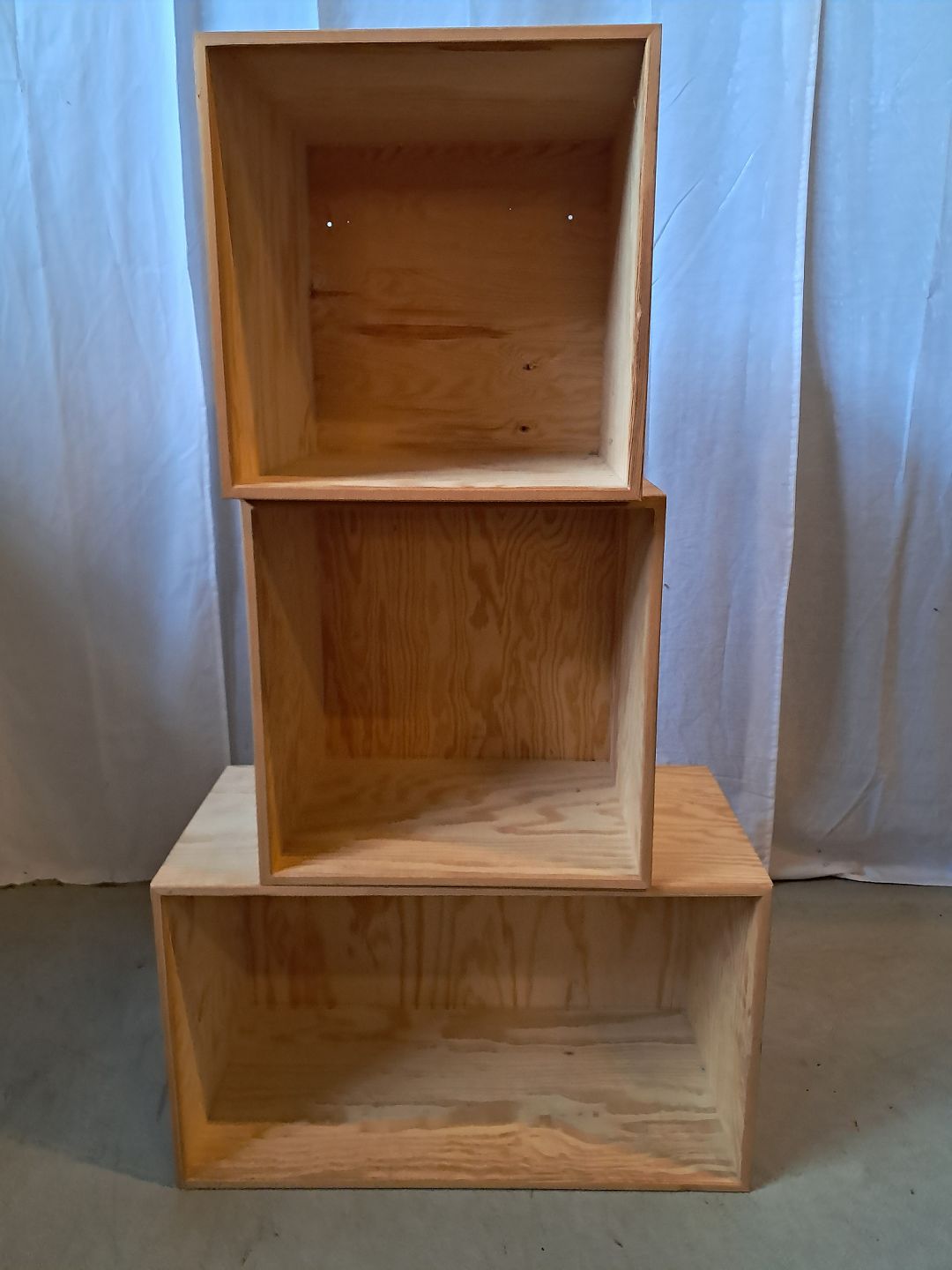 3 Reolkasser i krydsfiner, fra 2000erne.