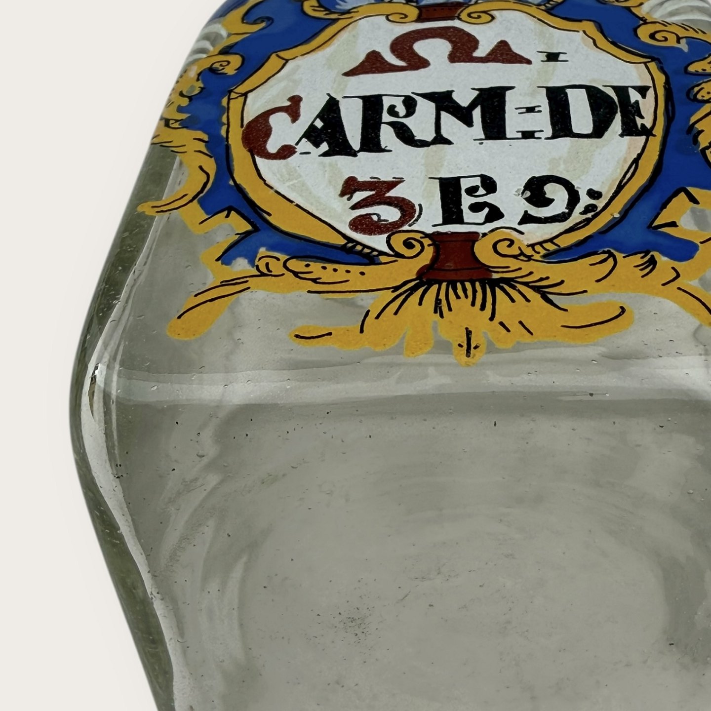 Holmegaard apotekerflaske fra 1994, Carm-de 3Ec, Mål: 11,5x7x7cm, flaskerne er mundblæste kopier af originale gamle apotekerflasker, Signeret Hg94.