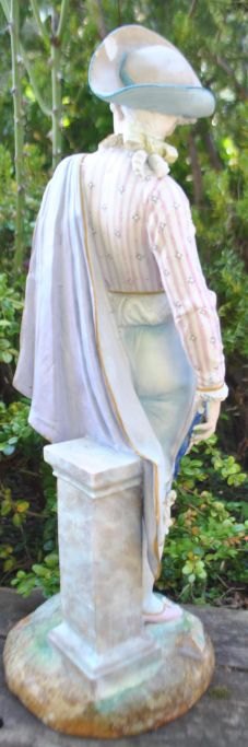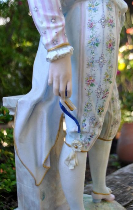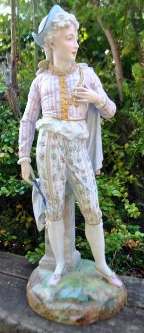 Stor bisquit figur af ung mand, 19. årh. Armand Marseilles, Tyskland. Koldbemalet porcelæn og med forgyldning. Stemplet. H: 55,5 cm.