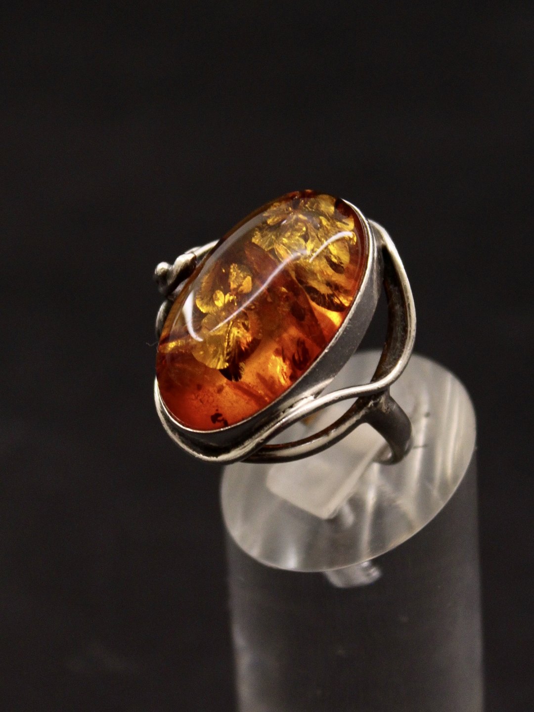 Sterling sølv ring størrelse 54 med rav emne nr. 622303