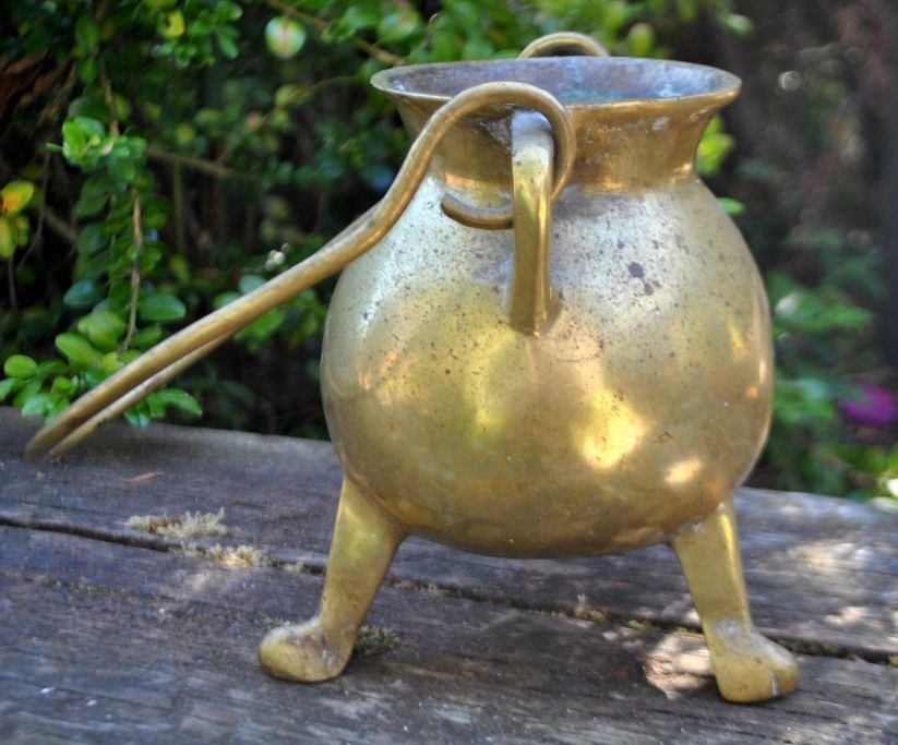 Barok trebens gryde med hank, 18. årh. Danmark. Ustemplet. Malm. H.: 15 cm. Højde med hank: 30 cm.