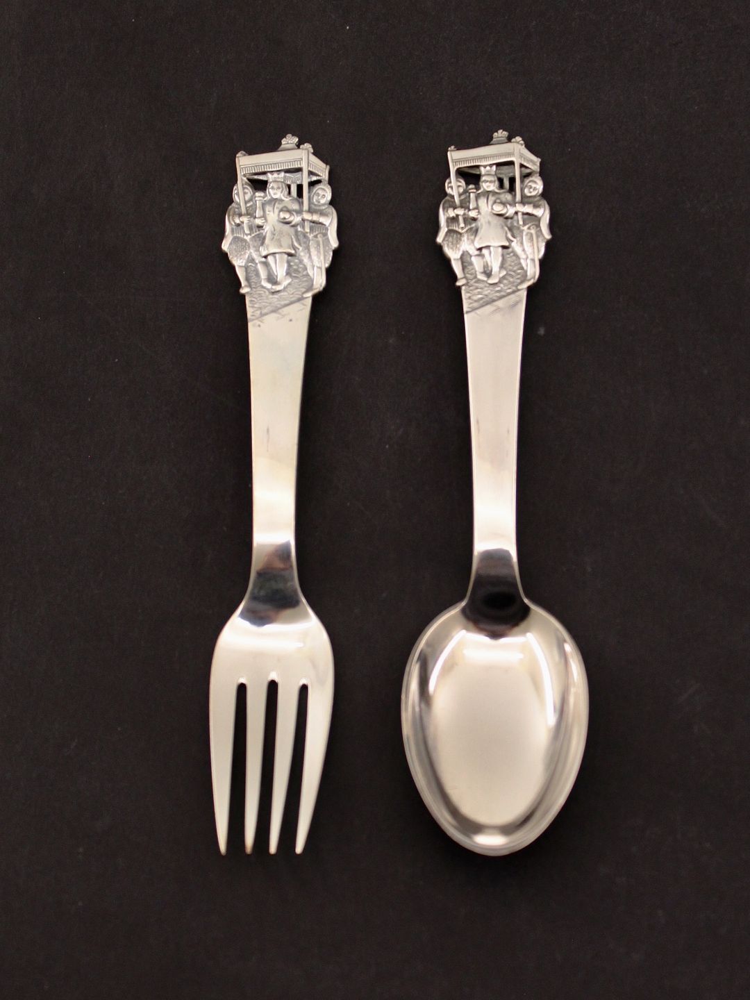 H C Andersen barne bestik 14,5 cm. "Kejserens nye Klæder" 830 sølv flot som ny ingengraveringer emne nr. 622338