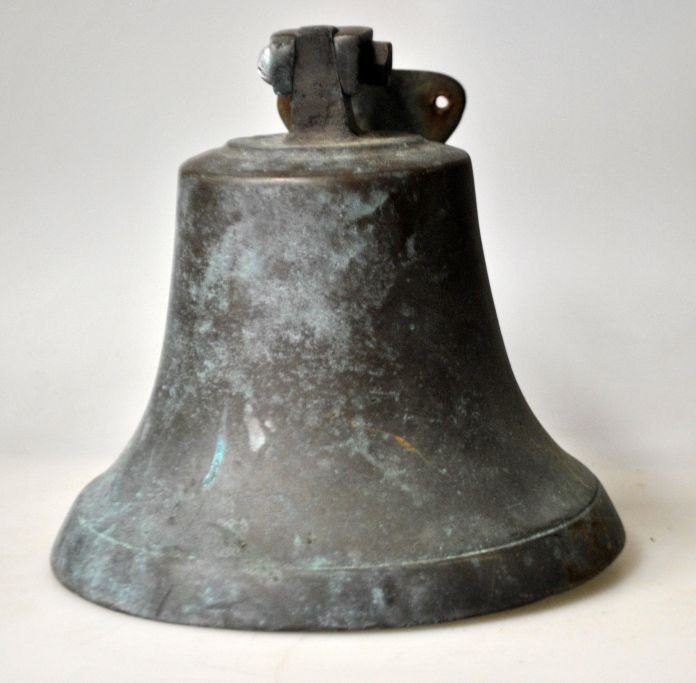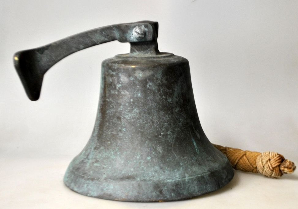 En gammel gårdklokke, malm, 20. årh. Danmark.